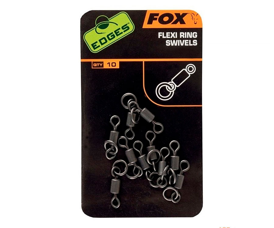 FOX Edges Flexi Ring Swivels Size — ковзний вертлюжок з кільцем для насадки від британської компанії FOX. Вся продукція провідного світового виробника рибальських товарів відрізняється високою надійністю та якісними матеріалами. Flexi Ring Swivels Size ідеально підходить для розміщення на цівку гачка або для оснастки D-Rig — коли наживка закріплена на ковзному кільці, вона легко з'їжджає вниз, дозволяючи гачку «впасти» на нижню губу коропа.