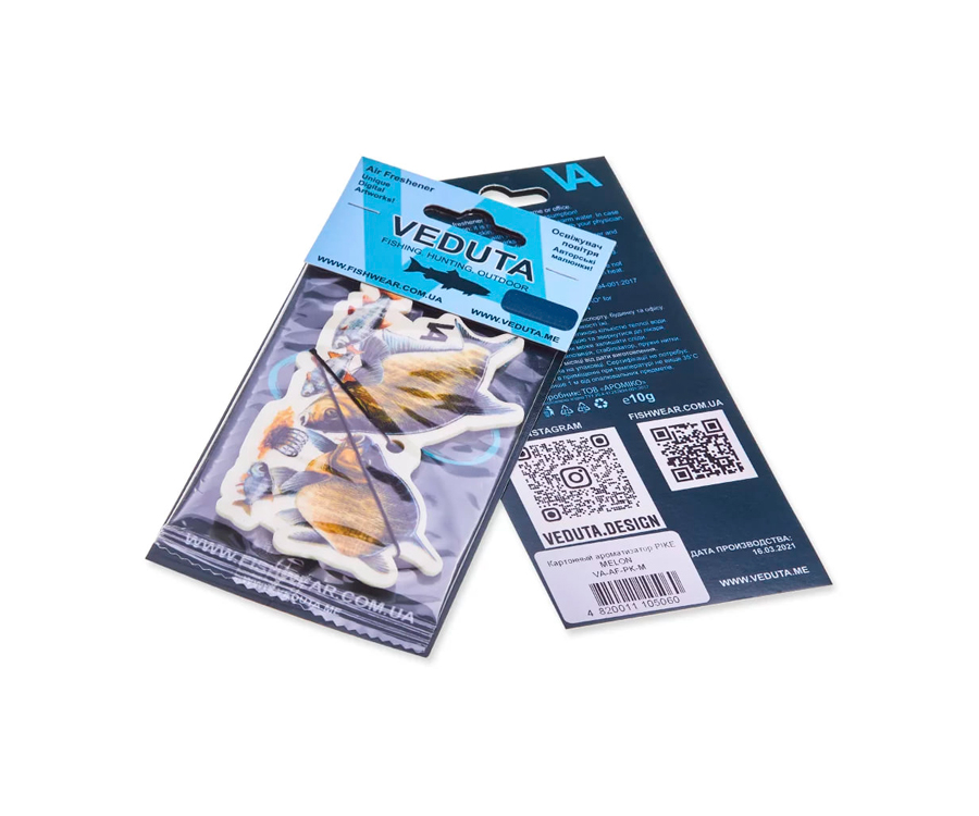 Картонний освіжувач повітря VA представлений у вигляді класичної підвіски масою 5г, що має форму риб з фірмовими малюнками VA. Купуючи такий освіжувач повітря, будьте впевнені - подібний виріб виконаний виключно за осоливим дизайном, рибалками для рибалок! Приємно, коли до бейсболки та джерсі з унікальними принтами у вашому авто буде й освіжувач повітря. Ароматизатори у вигляді риб мають у своєму асортименті 7 ароматів. Різноманітні дизайни порадують як любителів лову коропа або ляща на фідер, так і прихильників спінінгової ловлі!