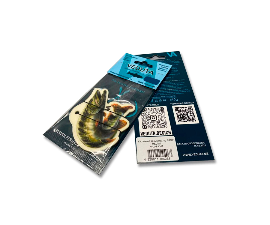 Картонний освіжувач повітря VA представлений у вигляді класичної підвіски масою 5г, що має форму риб з фірмовими малюнками VA. Купуючи такий освіжувач повітря, будьте впевнені - подібний виріб виконаний виключно за осоливим дизайном, рибалками для рибалок! Приємно, коли до бейсболки та джерсі з унікальними принтами у вашому авто буде й освіжувач повітря. Ароматизатори у вигляді риб мають у своєму асортименті 7 ароматів. Різноманітні дизайни порадують як любителів лову коропа або ляща на фідер, так і прихильників спінінгової ловлі!