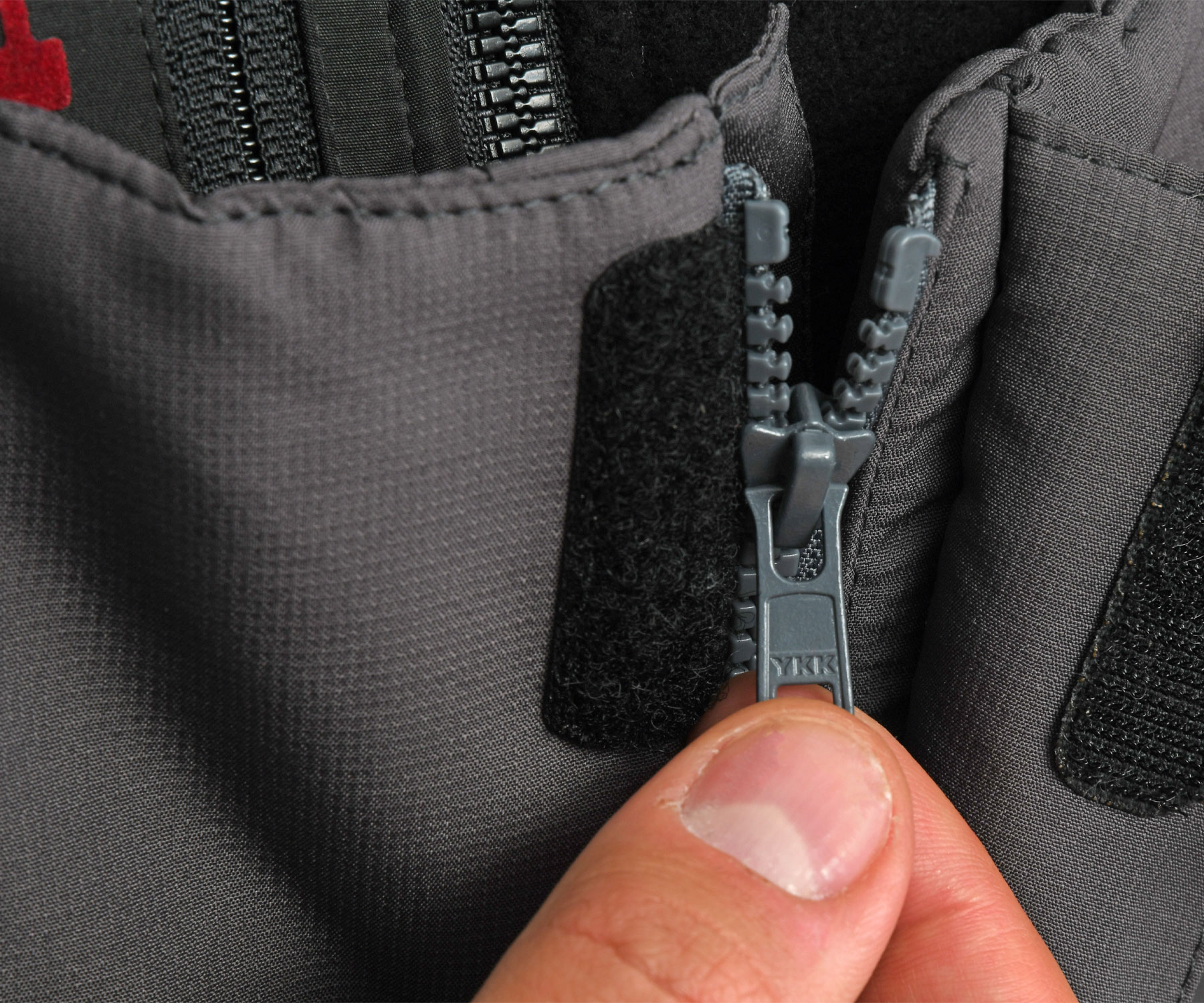Куртка застібається на центральну блискавку, яку прикрито клапаном на липучках. Виріб забезпечений глибоким капюшоном і високим штормовим коміром. У куртці є дві просторі утеплені бічні кишені та нагрудна кишеня на водонепроникних блискавках, а також внутрішня кишеня на блискавці для мобільного телефону чи документів. Для зручності регулювання та збереження тепла краї рукавів мають стяжки на липучках та внутрішні еластичні манжети. Передбачено регулювання капюшона гумовими стяжками-фіксаторами в задній частині та з боків, а також зручне стягування низа куртки. Штани мають високу спинку, зручні регульовані підтяжки на застібках фастекс, поясні стяжки, широкі лямки під поясний ремінь, дві бічні кишені на блискавках та низ штанин із блискавками й фіксаторами на липучці для зручного вдягання чобіт та іншого взуття.