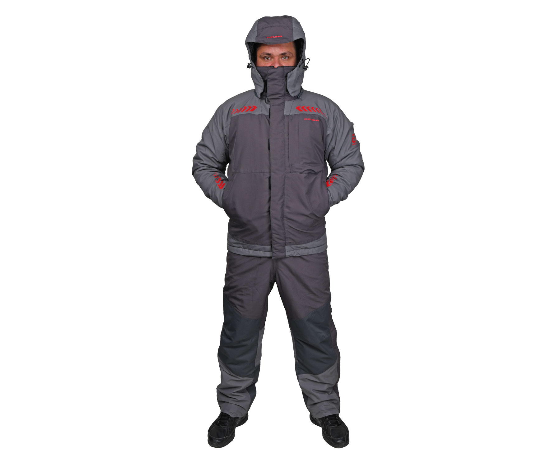 Куртка застібається на центральну блискавку, яку прикрито клапаном на липучках. Виріб забезпечений глибоким капюшоном і високим штормовим коміром. У куртці є дві просторі утеплені бічні кишені та нагрудна кишеня на водонепроникних блискавках, а також внутрішня кишеня на блискавці для мобільного телефону чи документів. Для зручності регулювання та збереження тепла краї рукавів мають стяжки на липучках та внутрішні еластичні манжети. Передбачено регулювання капюшона гумовими стяжками-фіксаторами в задній частині та з боків, а також зручне стягування низа куртки. Штани мають високу спинку, зручні регульовані підтяжки на застібках фастекс, поясні стяжки, широкі лямки під поясний ремінь, дві бічні кишені на блискавках та низ штанин із блискавками й фіксаторами на липучці для зручного вдягання чобіт та іншого взуття.