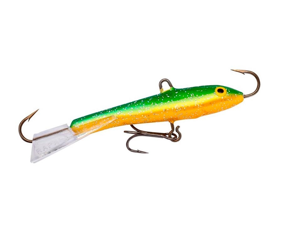 Rapala Jigging Rap – оригінальний балансир для вертикальної джигової ловлі, який розроблено фінською компанією Rapala. Має міцну жорстку конструкцію. Його оснащено якісними гачками VMC: одинарними в голові та у хвості, та трійником під черевцем. Доволі широкий хвіст дає змогу балансиру спокусливо планерувати в товщі води та приваблювати хижака поведінкою й рухами дезорієнтованого малька. Невеликі моделі Jigging Rap чудово показали себе під час ловлі окуня, форелі та невеликої щуки, як у стоячій воді, так і у водоймах із невеликою течією. Між широкого спектру забарвлень ви завжди підберете уловистий балансир, що найкращим чином відповідає умовам ловлі та мінливому настрою хижака.