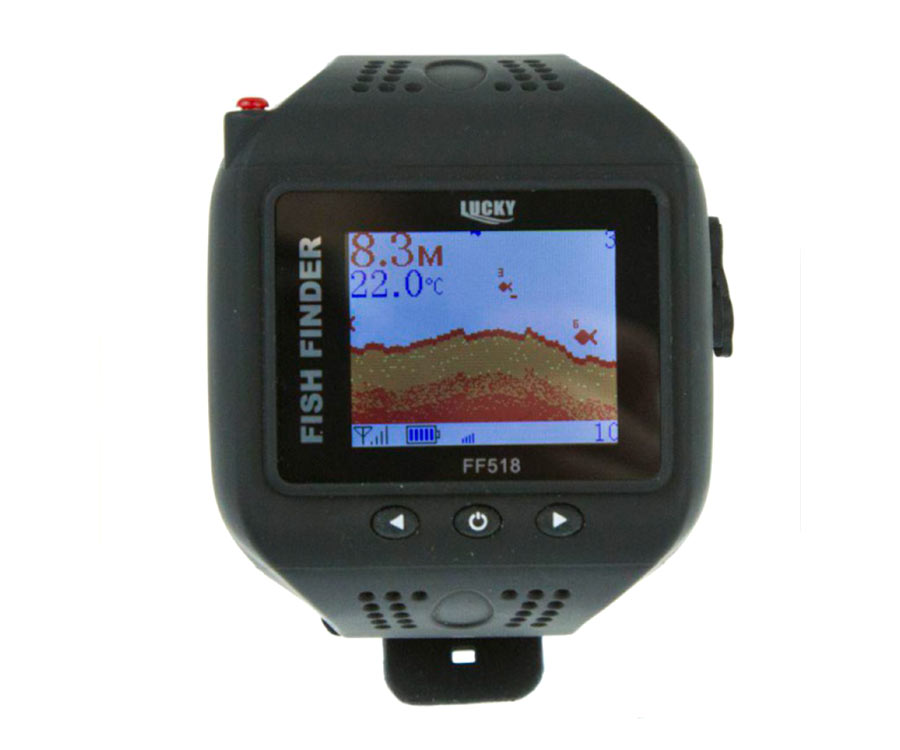 Наручний бездротовий ехолот для риболовлі Lucky FF-518 чудово підійде для всіх видів риболовлі з берега, для зимової риболовлі, а також для риболовлі човна. Ехолот здатний замінити маркерне вудлище при лові риби на новому місці, заощадити чимало часу при пошуку бровки і скупчення риби. За допомогою бездротового наручного ехолота виконаного у вигляді годинника можна дізнатися про глибину водойми, наявність риби, глибину на якій знаходиться риба, температуру води. При цьому ехолот для риболовлі Lucky FF-518 дуже зручно тримається на руці, не заважаючи улюбленій справі.