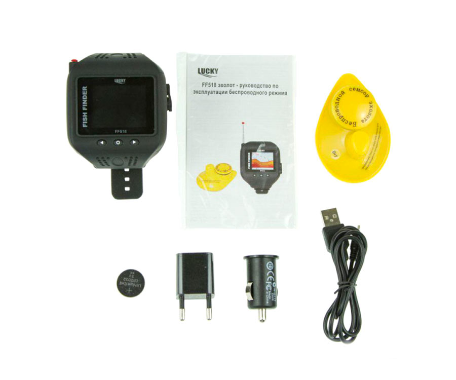 Кріплення на руку робить його зручним у носінні і експлуатації. Ехолот можна використовувати на зимовій риболовлі при температурі близько -10 градусів, і менше, тому що перебуваючи на руці ехолот не охолоджується до гранично низьких температур. Наручний ехолот має вбудований літій - іонний акумулятор, який може заряджатися від мережі 220 В або від прикурювача автомобіля. Цей ехолот має такий же функціонал як і всім відомий бездротовий ехолот ffw 718. Lucky FF-518 в лінійці ехолотів Fish Finder має кольоровий дисплей з високою роздільною здатністю, бездротовий датчик, і вбудований годинник. М'який ремінець виготовлений з поліуретану, за бажання його можна зняти. Також ви можете поставити ехолот на плоску поверхню на бік, він має надійне стійке положення. Якщо порівняти цю модель з аналогічною моделлю наручного ехолота Humminbird Smartcast RF35 з чорно-білим дисплеєм, що має ту ж ціну, то ви відразу побачите величезну перевагу FFW-518 в якості виготовлення і можливостях, які є тільки у цього ехолота.