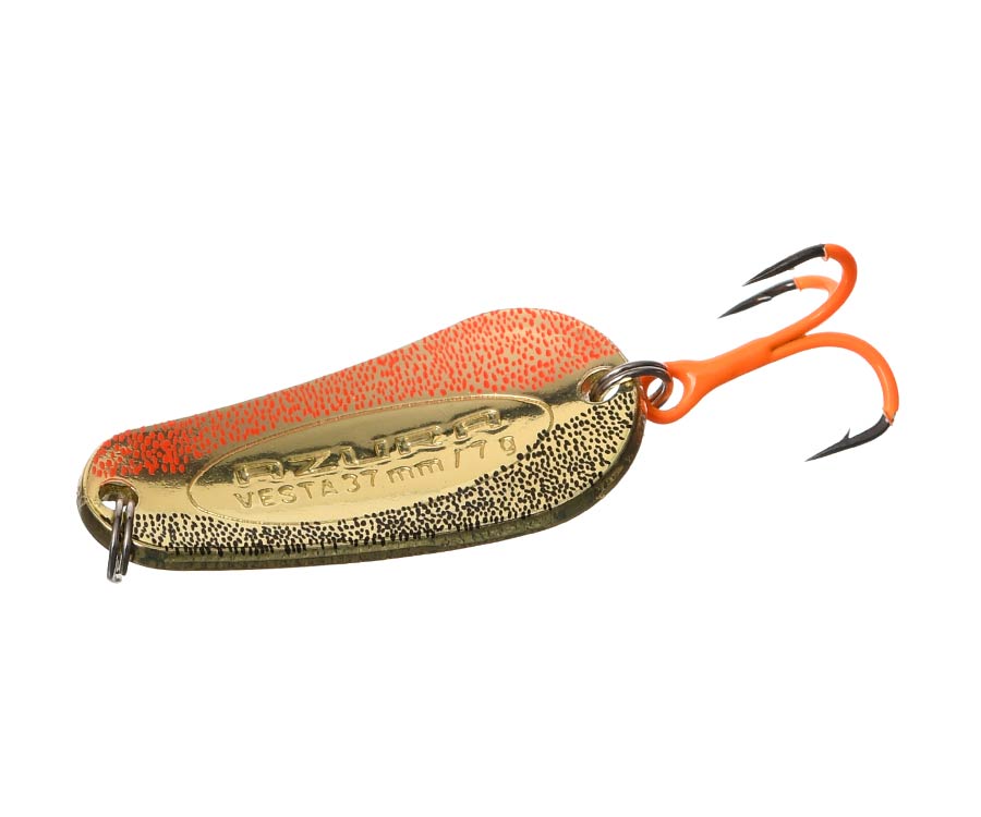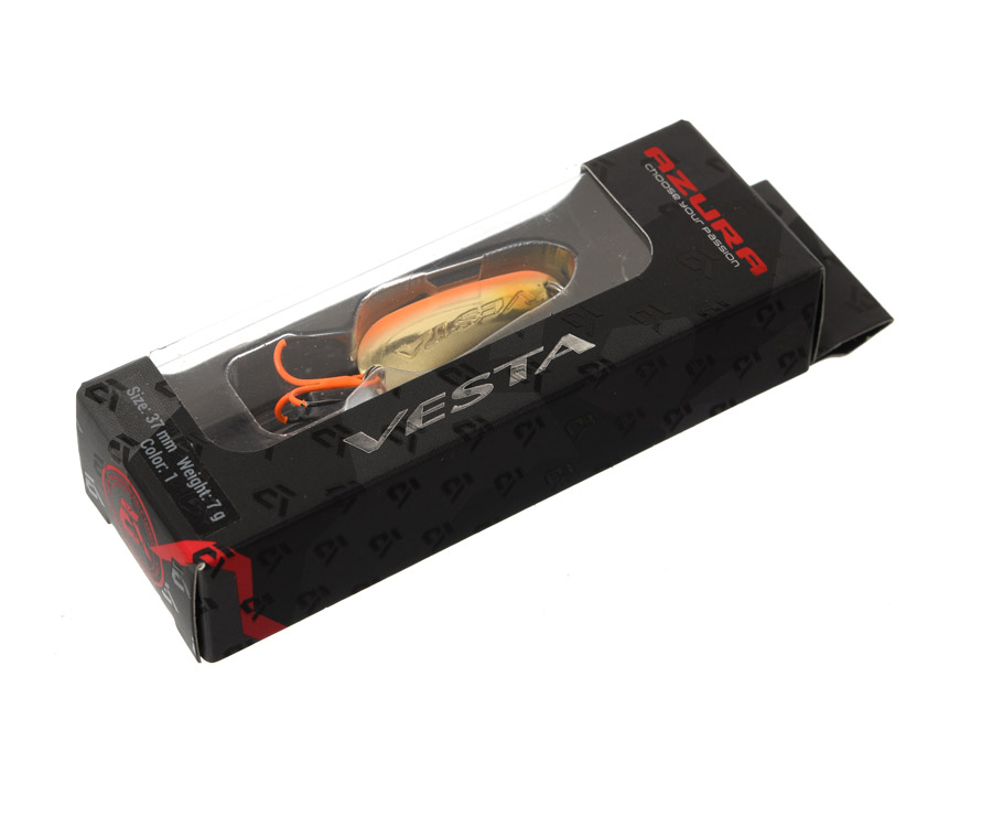 Azura Vesta – справжній фаворит із ловлі хижої та напівхижої риби. Тіло приманки, яке виготовлено з латуні, має невеликі розміри, але досить високу питому вагу, що дає змогу рибалити на течії та досить великих глибинах. За зовнішньо простої форми блешня Azura Vesta відмінно тримає глибину проведення та має унікальну здатність утримувати стійку роботу навіть на сильній течії. Приманку відмінно збалансовано, вона вирізняється спокусливою розмашистою грою і чудовими аеродинамічними характеристиками, що дають змогу виконувати далекі й точні закидання. Рифлена зовнішня поверхня створює під час проведення мерехтливі відблиски та мікрозавихрення води, що викликають у хижих риб непідробну зацікавленність і провокують їх на миттєву атаку. Блешню Vesta оснащено надійними заводними кільцями та гострими трійниками, здатними просікти пащу трофея будь-якої величини. Приманка має приголомшливу уловистість, як на швидких, так і на повільних проведеннях, що в умовах швидких річок, що в непроточних або повільно проточних водоймах. У списку її трофеїв жерех, головень, в'язь, окунь, форель, щука, судак тощо.
