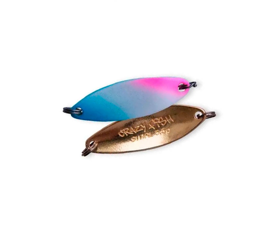Crazy Fish Swirl — витягнутої форми блешня вагою 3.3 грама, що нагадує вербовий листок. Призначена для лову на течії головня, жереха, язя і форелі, тому зроблена з досить товстого металу. Відмінно летить навіть за сильного бічного вітру завдяки своїй формі і відносно великій вазі за малого розміру.
