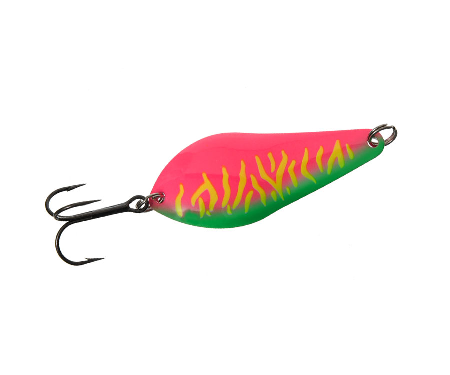 Flagman Atom – серія універсальних коливних блешень, що довели свою неймовірну ефективність задовго до народження переважної більшості сучасних риболовів. Блешні Атом – це невмируща класика, що вражає своєю уловистістю любителів спінінгової ловлі чимало десятиліть поспіль. Магічне поєднання унікального вигину, складної геометрії тіла із широкою задньою частиною і звуженим носом, звабливої вихляючої з боку в бік розгонистої гри та сміливих колірних рішень вивели цю улюблену багатьма приманку на сучасний рівень, вдихнувши в неї нове життя! Завдяки своїй універсальності блешня Flagman Atom чудово ловить хижака як у стоячих водоймах, так і на річковій течії, збираючи чималий «врожай» різношерстих трофеїв. Коливалки Atom від Flagman відмінно працюють на рівномірному проведенні, рівномірному з паузами й потяжками, рівномірному із чирканням по дну, стоп-енд-гоу, ступінчастому проведенні та їхніх варіаціях, причому, навіть за найменших швидкостей підмотування. Усі моделі Flagman Atom виготовлено з латуні, вони вирізняються винятковою точністю виготовлення та високою якістю лакофарбового покриття. Блешні оснащено міцними кованими завідними кільцями та надзвичайно гострими трійниками VMC. Оригінальні забарвлення пройшли всебічне тестування риболовами-спортсменами й довели свою високу ефективність на численних змаганнях. Блешні Atom – це ідеальні приманки для ловлі щуки, судака, сома, трофейного окуня, жереха, форелі та інших хижаків. Розміри всіх блешень однакові (65 мм), відмінність полягає в товщині металу і, відповідно, вазі приманок. Їх випускають у розваженнях: 10, 15 і 20 г.