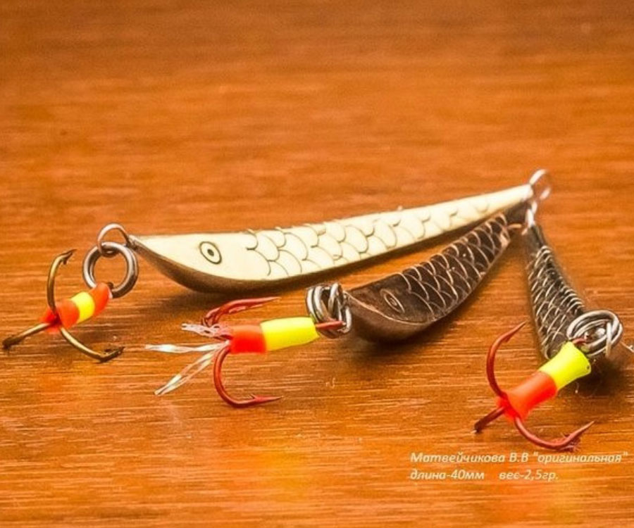 Блешня зимова Winterlures Матвійчикова Трійник - одна з найефективніших та найвідоміших блешень у спортивному світі. Ця блешня має довжину 50 мм і вагу 4,9 г. Вона відрізняється від класичної блешні злегка звуженим хвостом. Центр тяжіння зміщений ближче до "середини", при короткому різкому ривку блешня лягає в горизонт і сипеться. Виріб виготовляється з мельхіору, оснащений трійником Mustad.