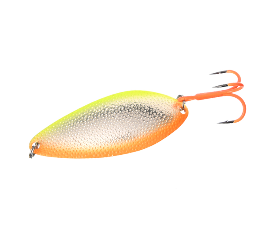 Azura Fortran Flat – серія високоефективних коливних блешень, що виділяються з-поміж інших класичною геометрією та високою уловистістю. Від улюбленої багатьма серії Fortran приманки Fortran Flat відрізняються ширшим тілом і вираженим S-подібним вигином. Вони виготовлені з латуні, мають багатошарове гальванічне покриття. Завдяки своїй формі Azura Fortran Flat демонструють активну розмашисту гру навіть на невеликих швидкостях. Приманки відмінно тримають глибину проведення, мають високу стабільність гри та чудово показують себе як на течії, так і в стоячій воді. Коливні блешні Azura Fortran Flat добре збалансовані й вирізняються гарними аеродинамічними характеристиками, що дають змогу виконувати далекі й точні закидання. Спеціальне рифлення поверхні приманки у формі частих западин-мікрокрапок створює унікальний 3D-ефект об'ємного, рухливого та спокусливо мерехтливого тіла невеликої рибки, а також забезпечує мікрозавихрення та турбулентність водяного потоку навколо приманки, що привертає увагу навіть вкрай малоактивного хижака. Кожну блешню Fortran Flat оснащено надійними завідними кільцями та надзвичайно гострими трійниками, здатними просікти пащу будь-якого трофея. Залежно від розмірів блешні, крім усюдисущої щуки, у вашому улові будуть практично всі хижаки наших вод: форель, великий окунь, жерех, судак, сом тощо. Усі блешні виготовлені на високотехнологічному обладнанні, що дає змогу добитися 100% повторюваності виробів, і пройшли ретельне тестування професійними експертами компанії Azura.