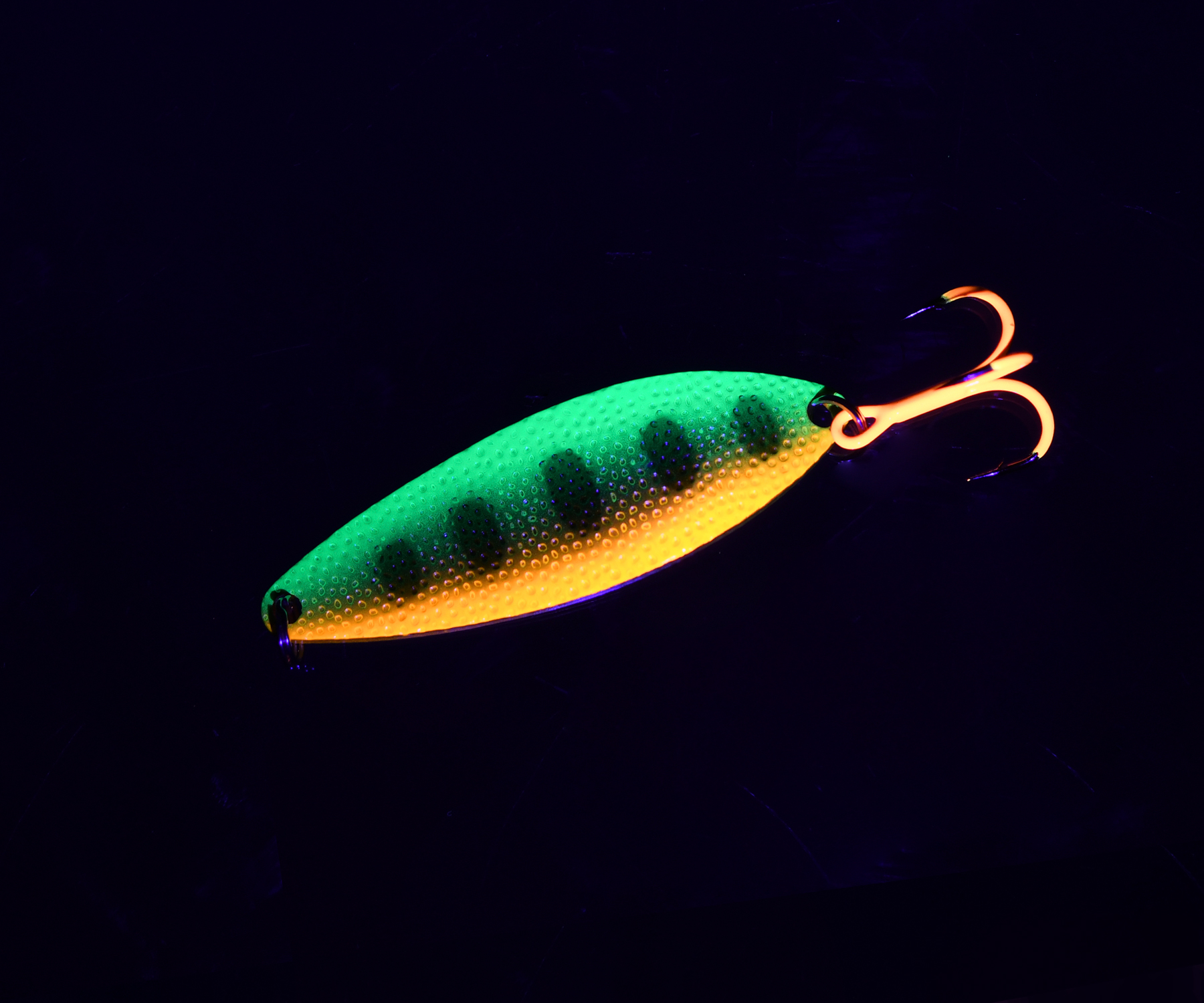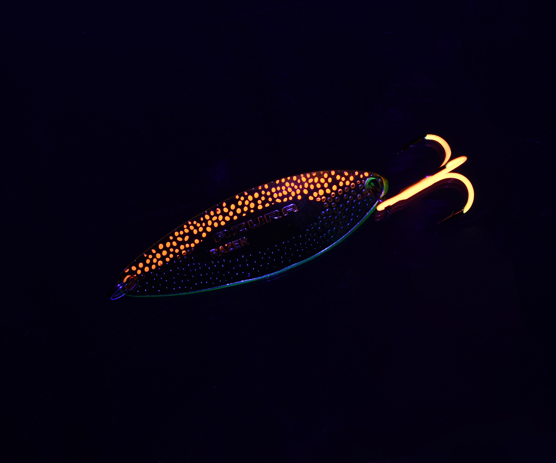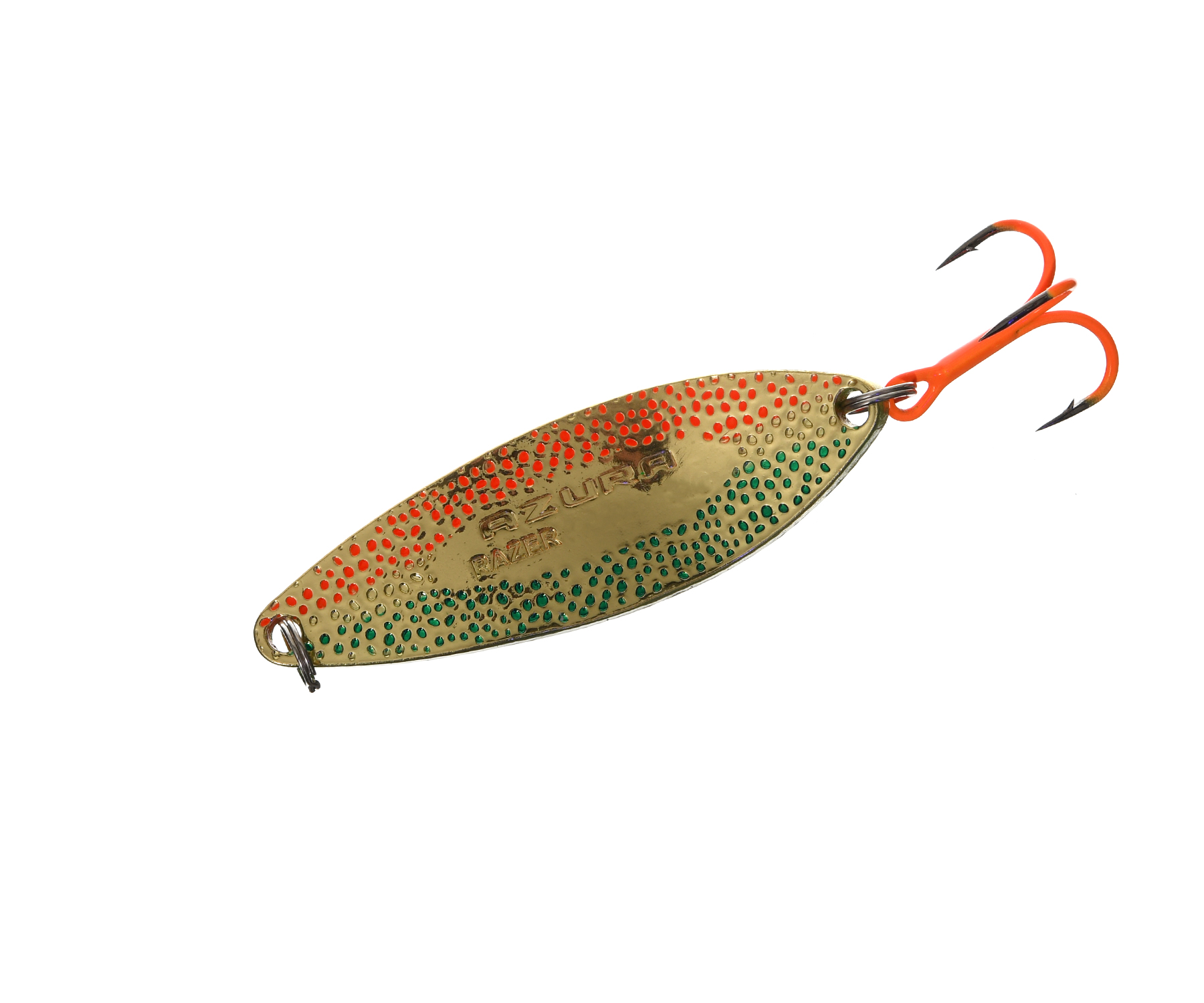 Блешні Azura Razer – серія висококласних коливних блешень довгастої звуженої форми, виготовлених із латуні. Завдяки своїй формі та унікальному профілю блешня Azura Razer має досить активну компактну гру, під час якої переважно працює її задня частина, що створює потужні низькочастотні коливання, привабливі для будь-якого хижака. Блешня створювалася для ловлі на швидких річках, тому чудово тримає течію, не спливає на поверхню та вирізняється високою стабільністю гри. Водночас затоки річок, озера, протоки та водосховища без течії також є вотчиною цієї приманки, яка збирає і тут багату данину! Приманка відмінно збалансована, чудово тримає глибину проведення і має неймовірні аеродинамічні характеристики, що дають змогу виконувати далекі та наддалекі закидання, тобто не лише працювати по площах, а й діставати до найобережнішої риби. Специфічна рельєфна зовнішня поверхня блешні не тільки робить привабливим її зовнішній вигляд, але і створює під час проведення мерехтливі відблиски та мікрозавихрення води, що викликають у хижих риб жвавий інтерес і провокують їх на миттєву атаку. Блешня дуже універсальна й демонструє феноменальні результати уловистості як на повільних і середніх, так і на високих швидкостях проведення. У списку її трофеїв щука, окунь, білизна, головень, судак, лосось та інші хижаки. Коливалки Azura Razer – чудовий приклад поєднання перевіреної часом японської класики та сучасних технологій. Приманки оснащені надійними завідними кільцями та найгострішими трійниками, доступні в широкому спектрі уловистих забарвлень, мають довжину 54, 58, 62 мм і вагу 14, 16, 21 г відповідно.