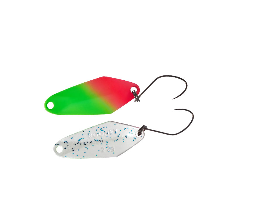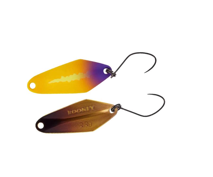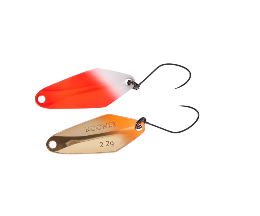 Блешня Nories Masukurouto Rooney– розроблена під керівництвом експерта Норіо Танабе після ретельного тестування в ставках з фореллю. Збалансована форма і маса дозволяють здійснювати дальній кидок навіть в умовах зустрічного вітру. Різні маси блешень володіють своїми власними технічними характеристиками — вигин, форма, товщина металу. Головною особливістю є ретельно розрахований центр тяжіння, який створює стабільні і різкі коливання. Серія Rooney має більш високочастотну гру у порівнянні з Weeper. А звичайна серія втілює в собі золоту середину характеристик частоти коливань. Система фарбування, з різними кольорами на звороті блешні візуально стимулює форель. Блешня Nories Masukurouto Rooney оснащена безбородим одинарним гачком.