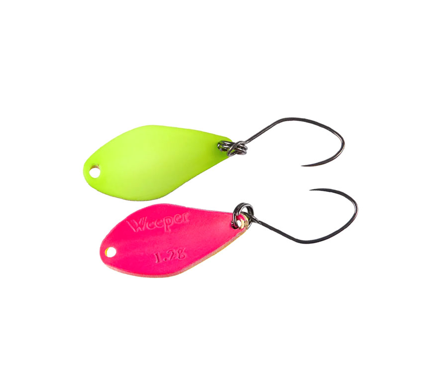 Блешня Nories Masukurouto Weeper розроблена для лову ставкової форелі в умовах високого пресингу. Її головною особливістю є ретельно розрахована форма, яка сприяє швидкому підйому приманки у верхні шари. Таким чином вона ідеально підходить для облову поверхні водоймища, де часто годується риба. При цьому для утримання необхідного горизонту та досягнення привабливої гри не потрібно здійснювати швидку проводку, а досить повільно обертати ручку котушки. Система фарбування з різними кольорами по обидва боки блешні візуально стимулює форель на атаку. Блешня Nories Masukurouto Weeper оснащена безбородим одинарним гачком.