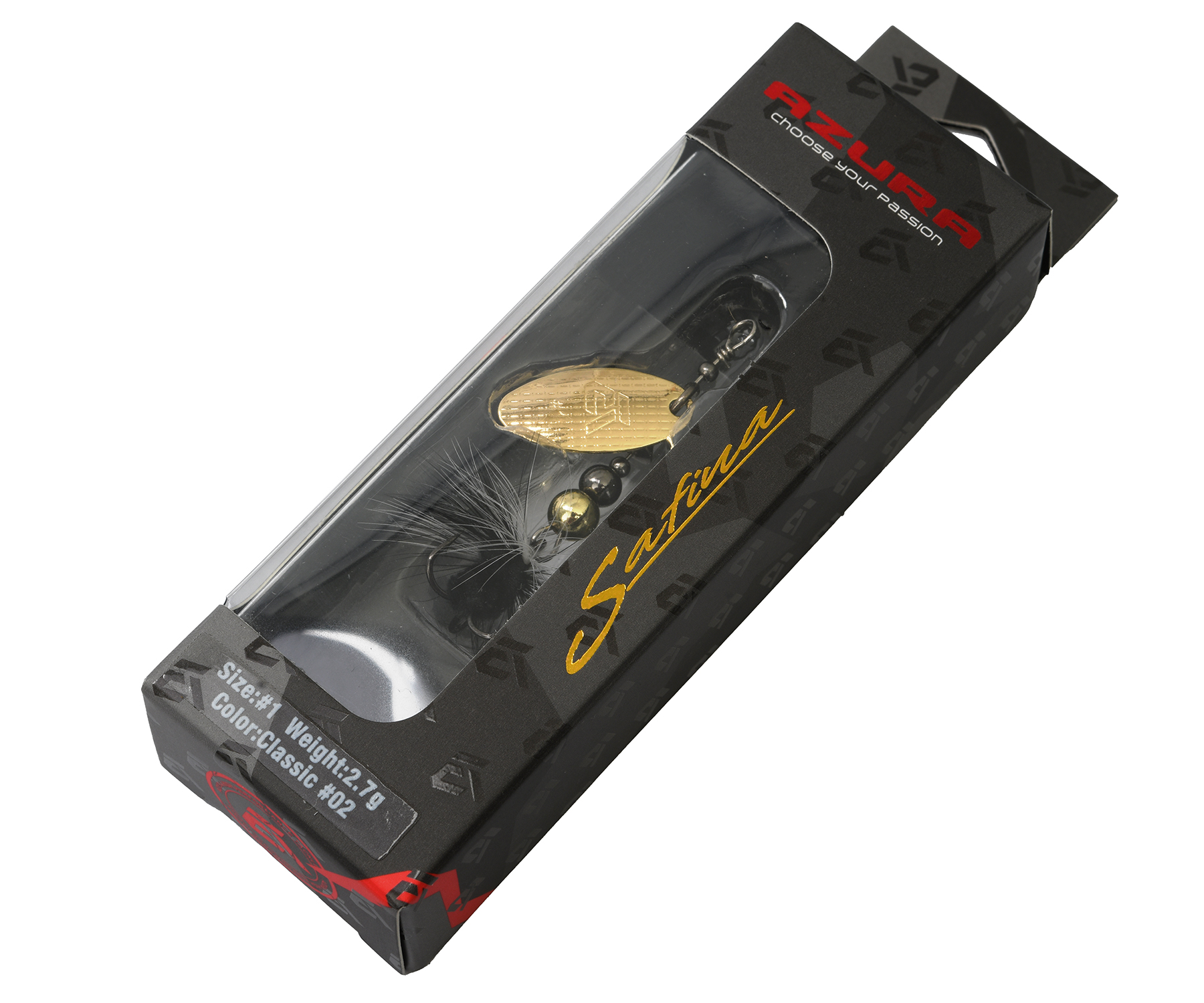 Обертова блешня Azura Safina – справжній фаворит із ловлі хижої та напівхижої риби. Вирізняється високим рівнем повторюваності та неперевершеною якістю лакофарбового покриття. Блешні Azura Safina виготовлено з високоякісних комплектуючих та елементів декору. Вони мають чудові польотні якості, завдяки чому кожне закидання вирізняється не тільки пристойною дальністю, а й високою точністю. Кут відхилення пелюстки в 35° у поєднанні з її унікальною геометрією забезпечують моментальне «увімкнення» приманки, що дуже важливо під час ловлі на мілководних ділянках із великою кількістю різноманітних водних об'єктів. Оберталки Azura Safina чудово показують себе як у стоячих водах озер, заток і водосховищ, так і на нерівномірних потоках річкових перекатів. Це чудовий приклад поєднання перевіреної часом класики та сучасних технологій.