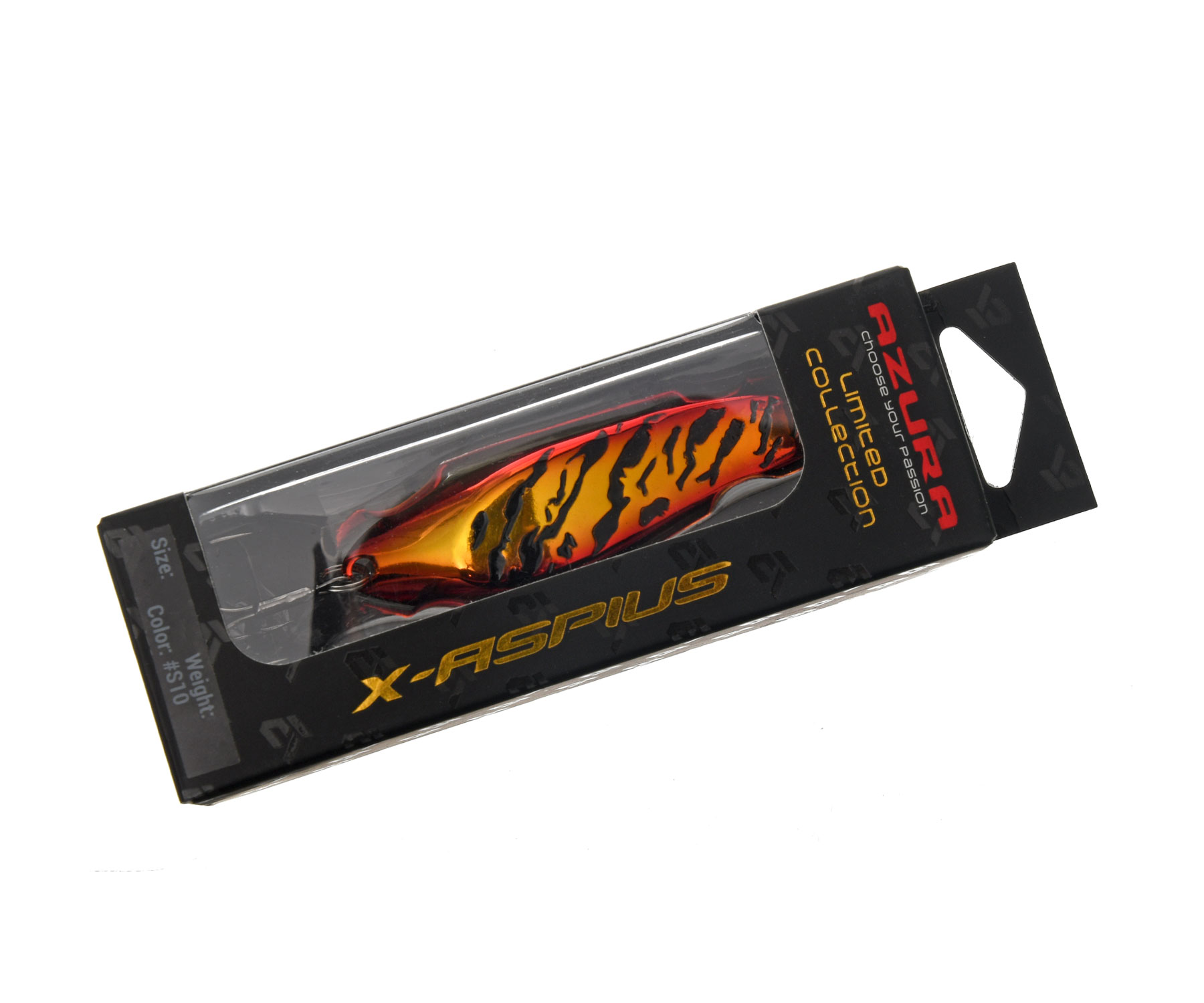 Блешні Azura X-Aspius Limited Collection – серія висококласних коливальних блешень подовженої звуженої форми, вироблених із латуні та виготовлених обмеженою партією. Цю універсальну приманку передусім створено для ловлі жереха на швидкій течії, проте вона демонструє чудові результати й щодо інших хижаків. Завдяки своїй прогонистій формі та унікальному профілю блешня Azura X-Aspius вирізняється активною грою, створюючи на середній та високій швидкості проведення потужні низькочастотні коливання та відблиски, привабливі для будь-якого річкового хижака. Приманка чудово збалансована, прекрасно тримає течію, сиплеться на паузі, вирізняється високою стабільністю гри й має видатні аеродинамічні характеристики, що дають змогу виконувати далекі й точні закидання, тобто не тільки працювати по площах, але й діставати до найбільш обережної риби. Специфічна рельєфна поверхня блешні не тільки робить привабливим її зовнішній вигляд, але і створює під час проведення унікальні мерехтливі відблиски та мікрозавихрення води, що викликають у хижих риб жвавий інтерес і провокують їх на атаку. Блешня є доволі універсальною і демонструє чудові результати як на швидких і середніх, так і на повільних швидкостях проведення, причому не тільки на плесах і перекатах, а й у самому «бурлі» – на різних за силою і спрямованістю струменях річкового потоку. У списку її трофеїв жерех, щука, окунь, головень, судак, лосось та інші хижаки. Коливалки Azura X-Aspius Limited Collection – це ще один приклад вдалого поєднання перевірених часом класичних підходів до створення спінінгових приманок і високоточних технологій. Блешні оснащено надійними завідними кільцями та надзвичайно гострими трійниками. Вони доступні в широкому спектрі уловистих забарвлень і розважуванні 4.5, 8, 14, 18 і 25 г.