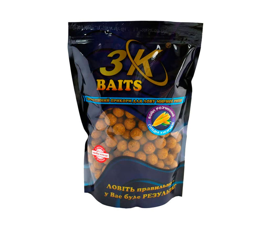 Розчинні бойли, що пилять від 3KBaits – це ефективні високоякісні приманки, які спеціально розроблено для ловлі коропових риб. У своєму складі бойли 3KBaits мають збалансований склад поживних і приваблюючих рибу елементів. Потрапляючи у воду, приманка починає пилити – виділяти приваблюючі й поживні речовини – і поступово розчинятися, утворюючи навколо себе хмарку легкого туману, що вабить рибу. Час повного розчинення бойла 3KBaits, залежно від температури води, становить приблизно 4 години. Бойли ТМ 3KBaits пройшли тривалі випробування на водоймах України, та зарекомендували себе, як дуже ефективні приманки для великої риби. Упаковка: zip-пакет 0,8 кг.