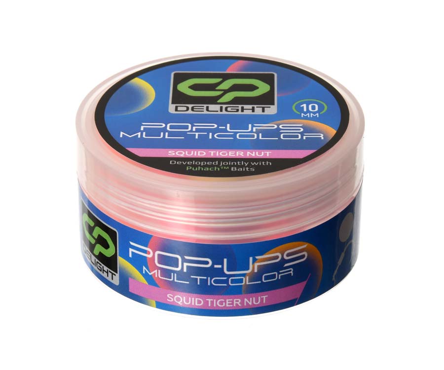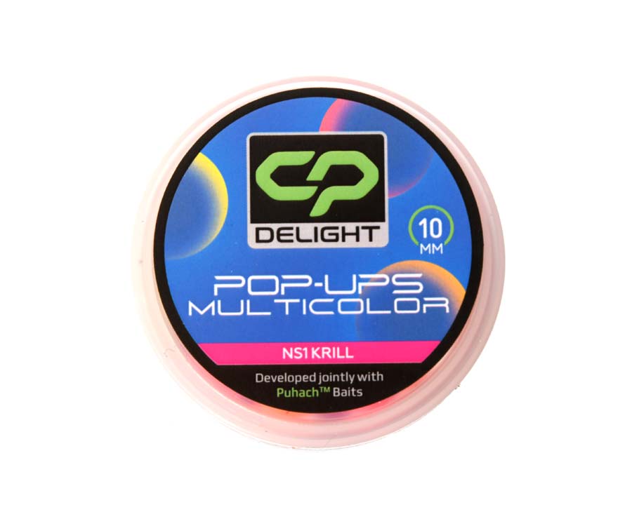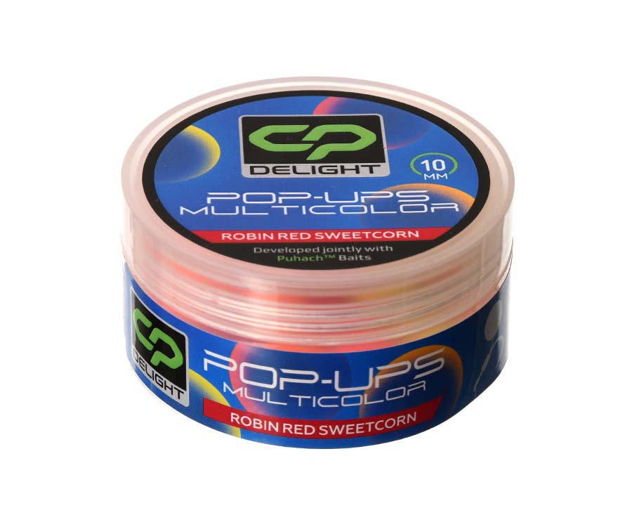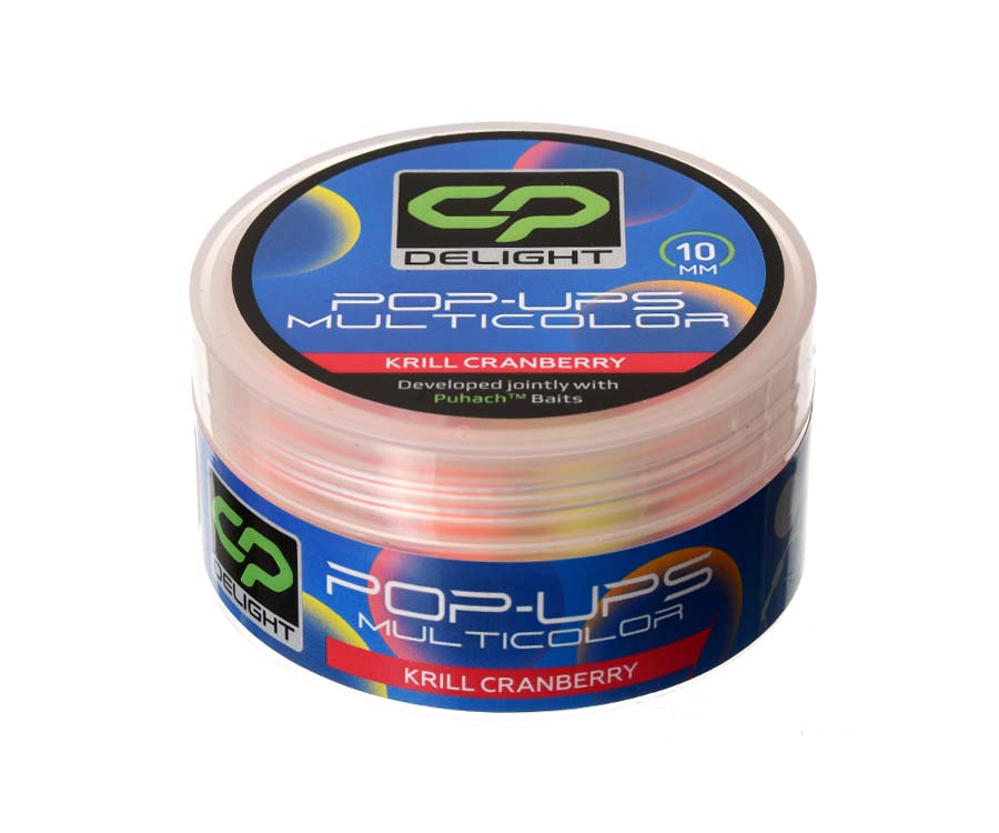 Carp Pro Delight Multicolor Pop Ups – плаваючі бойли вищої якості, які розроблені експертами компанії Carp Pro разом із відомим спортсменом Олексієм Пугачем та ідеально підходять для метод-фідерної ловлі коропа. Бойли Delight Multicolor Pop Ups виготовлено з використанням високоякісних інгредієнтів, що постачаються з європейського ринку – це зернові, стимулятори апетиту, ароматизатори, підсолоджувачі, барвники та бетаїн. У серії є класичні та фруктові запахи, солодкі аромати, спеції та їх комбінації, що особливо привабливі для коропа та іншої великої риби. Плаваючі бойли Carp Pro Delight Multicolor Pop Ups абсолютно нешкідливі для риби та інших підводних мешканців. Мають унікальне поєднання кольорів, смаків і запахів, які швидко поширюються у воді, приваблюючи рибу. Це чудові приманки для швидких риболовних сесій. Рекомендовані як для класичної коропової, так і для флет-фідерної ловлі. Delight Multicolor Pop Ups випускають у зручній розфасовці та найпопулярніших розмірах, що дає змогу швидко підібрати потрібну приманку під умови ловлі та вподобання риби.