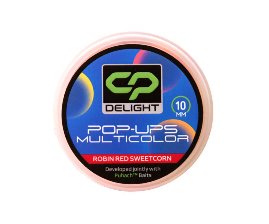 Carp Pro Delight Multicolor Pop Ups – плаваючі бойли вищої якості, які розроблені експертами компанії Carp Pro разом із відомим спортсменом Олексієм Пугачем та ідеально підходять для метод-фідерної ловлі коропа. Бойли Delight Multicolor Pop Ups виготовлено з використанням високоякісних інгредієнтів, що постачаються з європейського ринку – це зернові, стимулятори апетиту, ароматизатори, підсолоджувачі, барвники та бетаїн. У серії є класичні та фруктові запахи, солодкі аромати, спеції та їх комбінації, що особливо привабливі для коропа та іншої великої риби. Плаваючі бойли Carp Pro Delight Multicolor Pop Ups абсолютно нешкідливі для риби та інших підводних мешканців. Мають унікальне поєднання кольорів, смаків і запахів, які швидко поширюються у воді, приваблюючи рибу. Це чудові приманки для швидких риболовних сесій. Рекомендовані як для класичної коропової, так і для флет-фідерної ловлі. Delight Multicolor Pop Ups випускають у зручній розфасовці та найпопулярніших розмірах, що дає змогу швидко підібрати потрібну приманку під умови ловлі та вподобання риби.