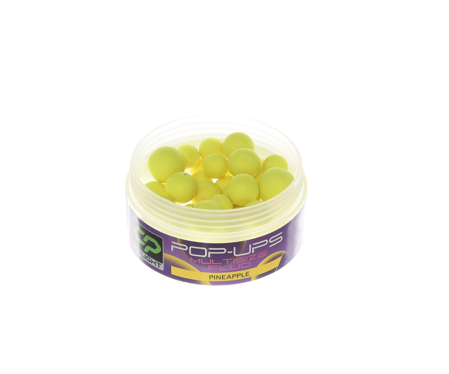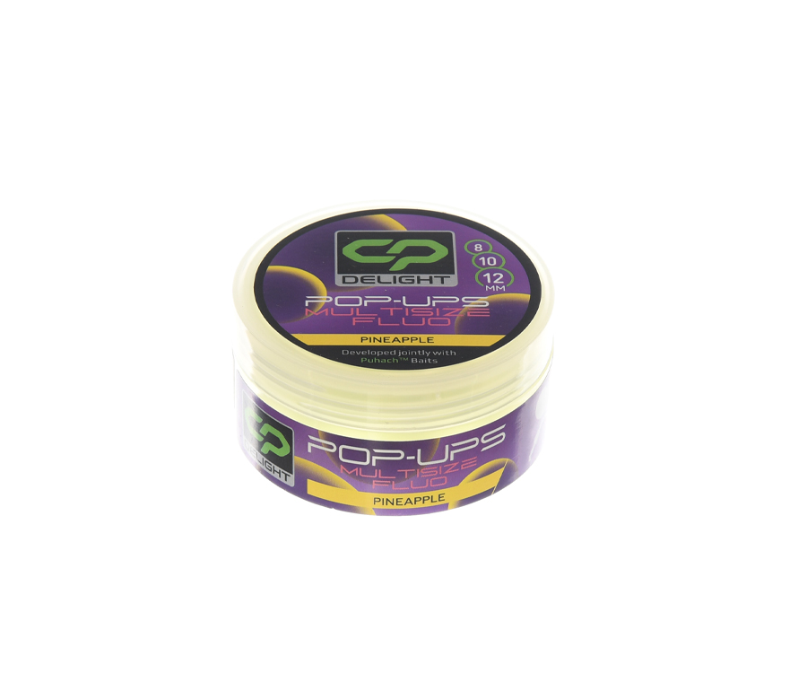 Carp Pro Delight Multisize Fluo Pop Ups – плаваючі бойли вищої якості, які розроблені експертами компанії Carp Pro разом із відомим спортсменом Олексієм Пугачем та ідеально підходять для класичної та метод-фідерної ловлі коропа. Бойли Delight Multisize Fluo Pop Ups виготовлено з використанням високоякісних інгредієнтів, що постачаються з європейського ринку – це зернові, стимулятори апетиту, ароматизатори, підсолоджувачі, барвники та бетаїн. У серії є класичні та фруктові запахи, солодкі аромати, спеції та їх комбінації, що особливо привабливі для коропа та іншої великої риби. Плаваючі бойли Carp Pro Delight Multisize Fluo Pop Ups абсолютно нешкідливі для риби та інших підводних мешканців. Мають унікальне поєднання яскравих кольорів, смаків і запахів, які швидко поширюються у воді, приваблюючи рибу. Це чудові приманки для швидких риболовних сесій. Delight Multisize Fluo Pop Ups у розмірах 8, 10 і 12 мм розфасовано в зручну герметичну упаковку, що дає змогу тривалий час зберігати їхні робочі якості, а також швидко підібрати приманку потрібного діаметру під умови ловлі та вподобання риби.