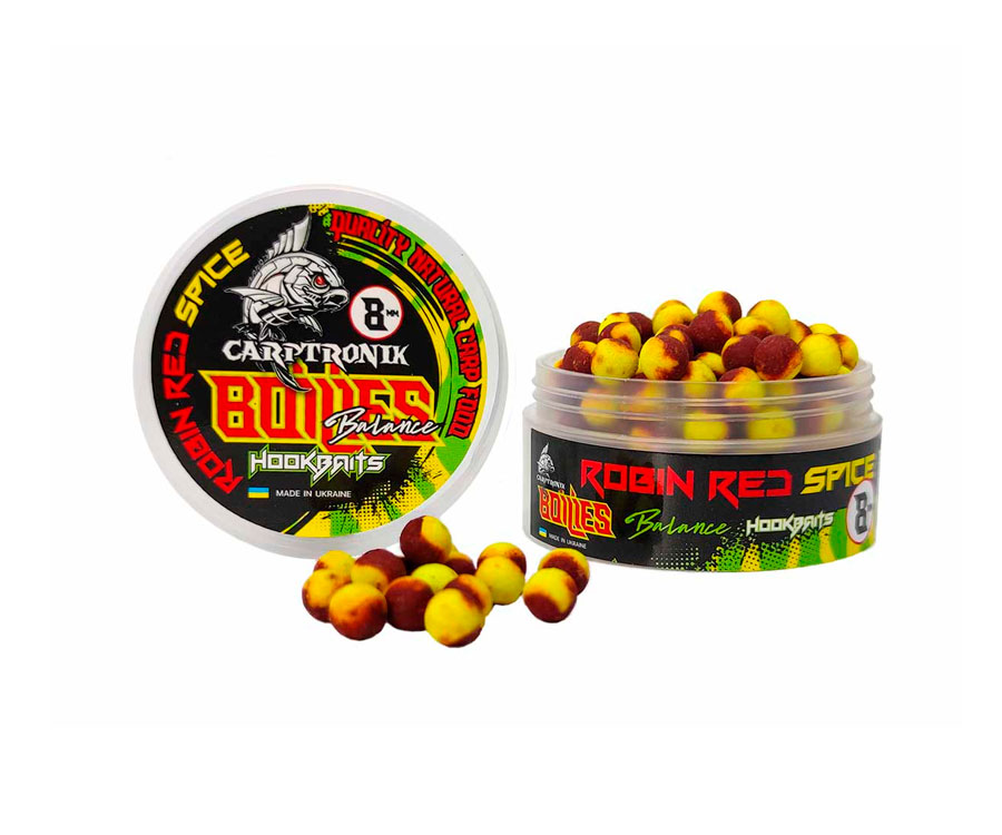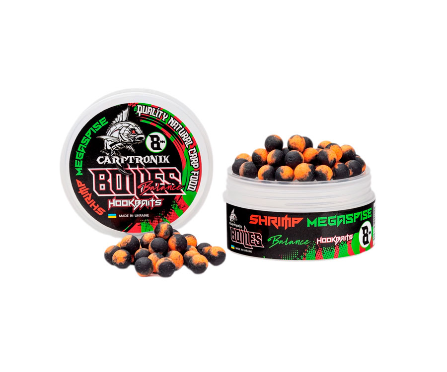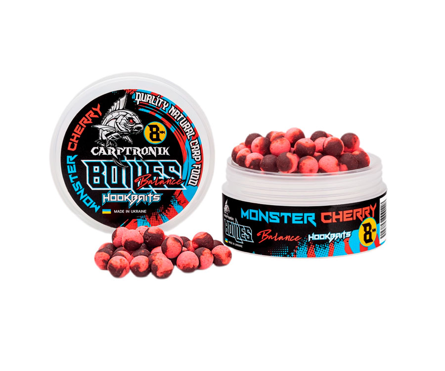 Бойли Carptronik Balance – плаваюча збалансована насадка, що складається з 2 частин: вареної тонучої та плаваючої частини pop-ups. Такий комбінований бойл дуже привабливий для обережного запресованого коропа, особливо в моменти його низької активності. Carptronik Balance однаково ефективні як на твердому дні, так і на мулистому. Яскрава плаваюча частина забезпечує чудове візуальне приваблення риби, до того ж вона світиться в ультрафіолеті, що особливо ефективно під час ловлі на глибинах понад 3 метри та за недостатньої освітленості. Потопаюча варена частина складається з поживних м'ясо-рибних компонентів, має потужний харчовий сигнал і привабливість для риби. Бойли Balance самодостатня насадка, яка знайшла широке застосування як у класичному карпфішингу, так і у флет-фідерній ловлі.