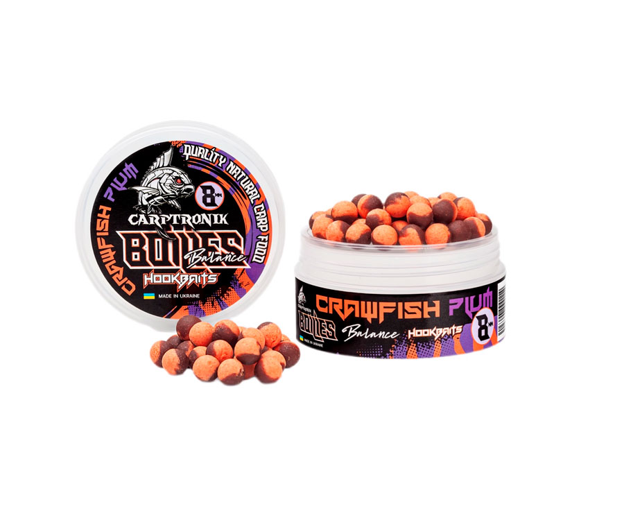 Бойли Carptronik Balance – плаваюча збалансована насадка, що складається з 2 частин: вареної тонучої та плаваючої частини pop-ups. Такий комбінований бойл дуже привабливий для обережного запресованого коропа, особливо в моменти його низької активності. Carptronik Balance однаково ефективні як на твердому дні, так і на мулистому. Яскрава плаваюча частина забезпечує чудове візуальне приваблення риби, до того ж вона світиться в ультрафіолеті, що особливо ефективно під час ловлі на глибинах понад 3 метри та за недостатньої освітленості. Потопаюча варена частина складається з поживних м'ясо-рибних компонентів, має потужний харчовий сигнал і привабливість для риби. Бойли Balance самодостатня насадка, яка знайшла широке застосування як у класичному карпфішингу, так і у флет-фідерній ловлі.