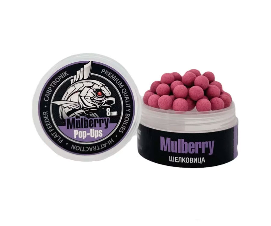 Насадкові плаваючі бойли Саrptronik Pop up — це невеликі насадки розміром лише 8мм. Основна особливість це яскраве Флюоро забарвлення та насичені смаки з додаванням ефірних олій та кислот. Флюоро колір буває вкрай результативним при лові коропа навесні та восени. У цей час зір у риб слабшає. Також ці кольори дуже рятують при лові в каламутній воді.
