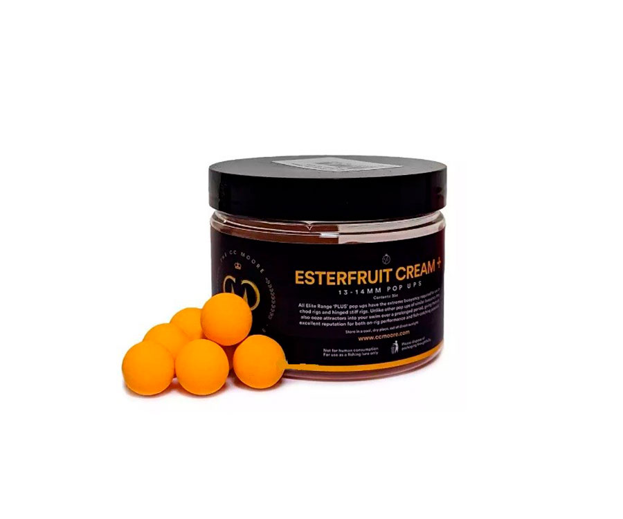 Elite Range - оновлена лінійка, яка народилася в результаті копіткої праці технічного персоналу компанії CCMoore. Бойли CC Moore Esterfruit Cream Pop Ups відрізняються чудовою плавучістю та відмінною підйомною силою, здатні тривалий час перебувати під водою, не втрачаючи своїх привабливих властивостей. Підходять для використання як по теплій, так і холодній воді в тривалих або короткочасних коропових сесіях.