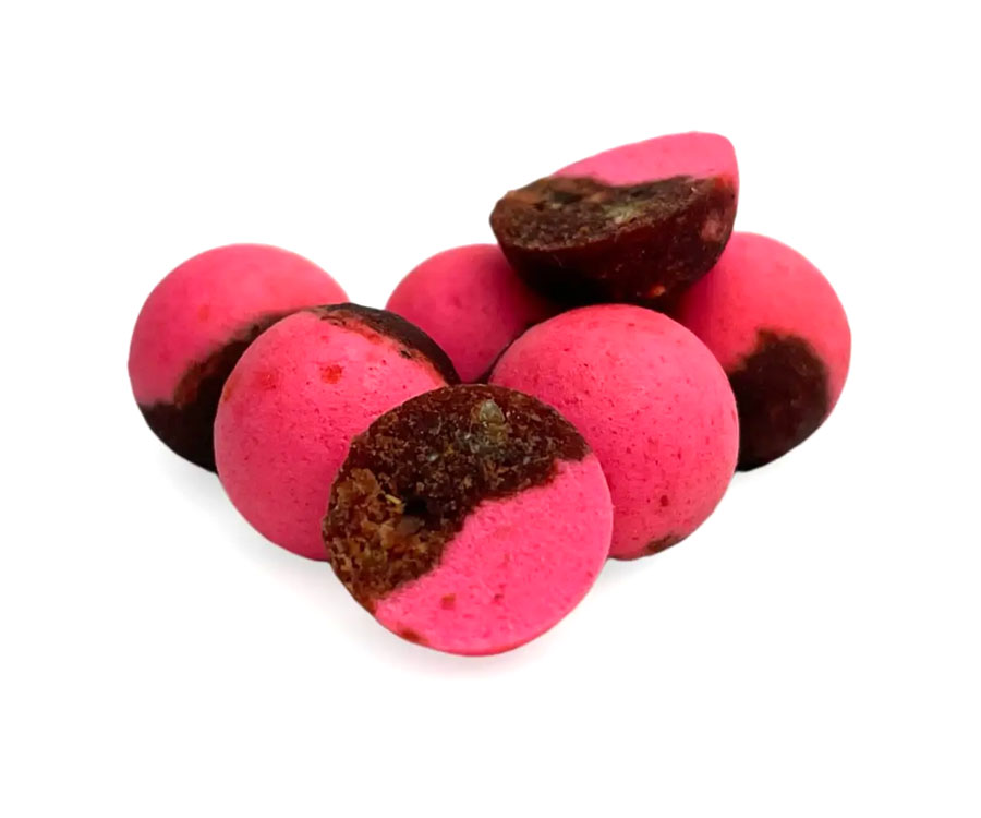 Devil Squid & Red Berry Hybrid Wafters — дуже ефективні збалансовані насадочні бойли, які поєднанні з двох частин, одна половина тонучий варений бойл, а інша плаваючий (Pop-up). Така насадка, дасть Вам додаткові переваги: колір плаваючої частини та харчовий сигнал тонучої частини, а загальна зменшена вага насадки, може зіграти вирішальну роль при ловлі на замуленому дні. Ця критично збалансована приманка, буде першим елементом, який спробує короп, коли він знаходиться в кормовій точці та харчується апатично.