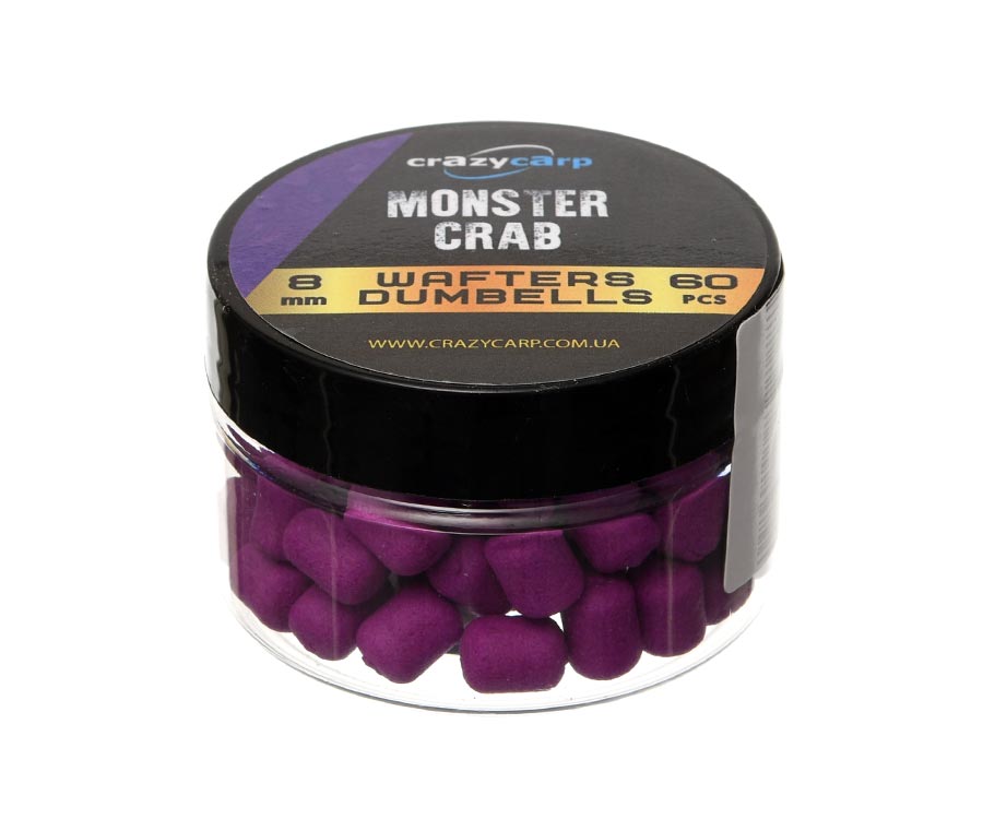 Crazy Carp Wafters Dumbbells – якісна насадка невеликого розміру для волосяної оснастки, яка чудово підходить як для класичної коропової ловлі, так і для ловлі фідером. Wafters Dumbbells – насадка для збалансованого монтажу: вона не мусить піднімати гачок, її завдання – підняти волос і зробити сам монтаж невагомим для риби. Довгаста гантелеподібна насадка Crazy Carp Wafters Dumbbells чудово зарекомендувала себе на наших водоймах і часто обловлює звичний круглий бойл у кілька разів. Серія вафтерсів Crazy Carp Wafters Wafters Dumbbells містить найбільш популярні смаки/аромати в яскравих флюоресцентних кольорах. У їхньому складі компоненти найвищої якості: зернові, стимулятори апетиту, ароматизатори, бетаїн, підсолоджувачі, харчові барвники. Кожен колір дуже яскравий і формує сильний візуальний сигнал, який відповідає рівню привабливості, створеному стимуляторами апетиту. Вафтерси Crazy Carp мають міцну губчасту структуру, їх можна легко підрізати відповідно до ваших потреб і розміру гачка. Для максимально ефективної презентації насадки рекомендовано використовувати гачки №8-10. У цьому разі гачок лежатиме на дні, а дамбелс підніме волос під кутом приблизно в 45 градусів.