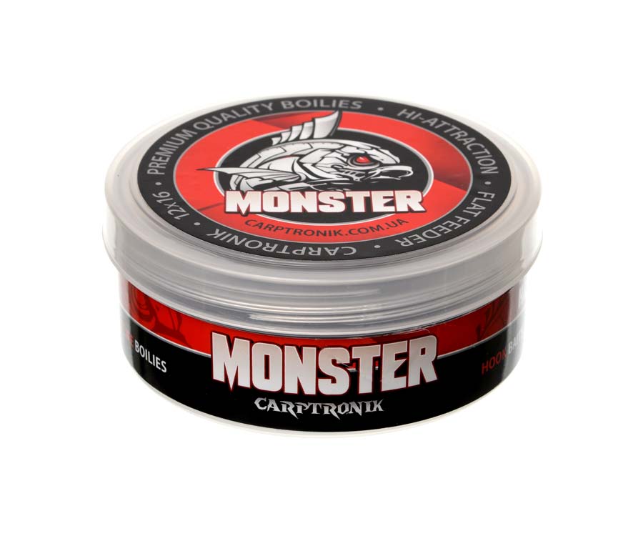 Преміальні парені насадочні бойли Carptronik чудово підходять для волосяного монтажу, а також прекрасно працюють у ПВА-стіках і ПВА-пакетах із додаванням невеликої кількості прикормки. Годяться як для класичної коропової ловлі, так і для флет-фідерної риболовлі. Завдяки досить м'якій пластичній структурі приманку Carptronik легко проколоти та насадити на волос, підрізати ножем або ножицями для створення "сніговиків" або критично збалансованих насадок незвичайної форми. Виготовлені з якісних інгредієнтів із додаванням високоефективних атрактантів, амінокислот і мінералів. Інтенсивний аромат, привабливий для риби смаковий і візуальний сигнал парених бойлів Carptronik – запорука успіху під час спортивної або аматорської ловлі коропа, амура та іншої великої риби. Бойли-дамбелси Carptronik випускають у найпопулярніших у риби смаках та ароматах, вони мають форму гантелі – dumbbell – і розміри 12х16 мм.