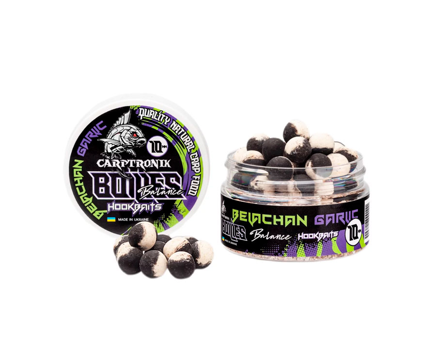 Бойли Carptronik Balance – плаваюча збалансована насадка, що складається з 2 частин: вареної тонучої та плаваючої частини pop-ups. Такий комбінований бойл дуже привабливий для обережного запресованого коропа, особливо в моменти його низької активності. Carptronik Balance однаково ефективні як на твердому дні, так і на мулистому. Яскрава плаваюча частина забезпечує чудове візуальне приваблення риби, до того ж вона світиться в ультрафіолеті, що особливо ефективно під час ловлі на глибинах понад 3 метри та за недостатньої освітленості. Потопаюча варена частина складається з поживних м'ясо-рибних компонентів, має потужний харчовий сигнал і привабливість для риби. Бойли Balance самодостатня насадка, яка знайшла широке застосування як у класичному карпфішингу, так і у флет-фідерній ловлі.