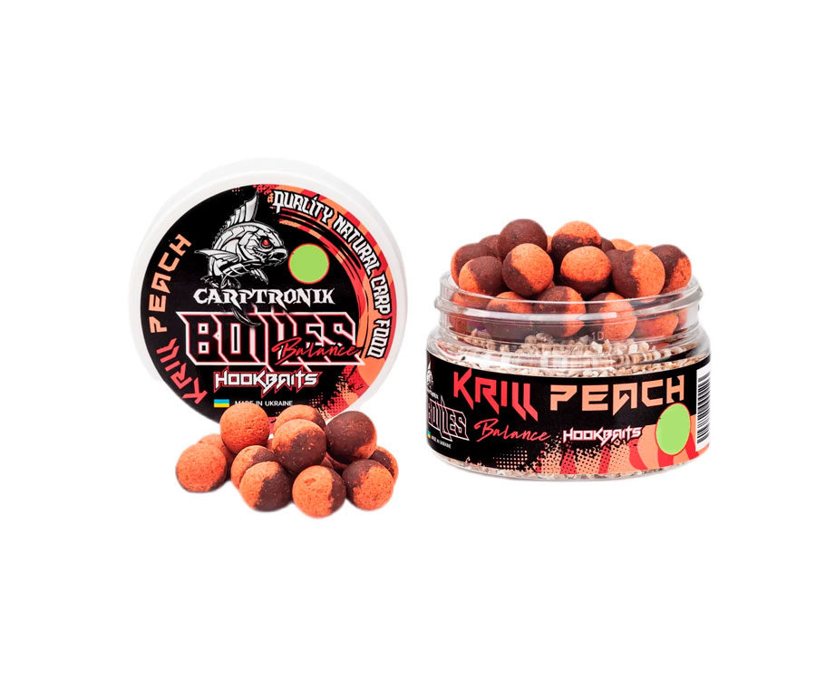 Бойли Carptronik Balance – плаваюча збалансована насадка, що складається з 2 частин: вареної тонучої та плаваючої частини pop-ups. Такий комбінований бойл дуже привабливий для обережного запресованого коропа, особливо в моменти його низької активності. Carptronik Balance однаково ефективні як на твердому дні, так і на мулистому. Яскрава плаваюча частина забезпечує чудове візуальне приваблення риби, до того ж вона світиться в ультрафіолеті, що особливо ефективно під час ловлі на глибинах понад 3 метри та за недостатньої освітленості. Потопаюча варена частина складається з поживних м'ясо-рибних компонентів, має потужний харчовий сигнал і привабливість для риби. Бойли Balance самодостатня насадка, яка знайшла широке застосування як у класичному карпфішингу, так і у флет-фідерній ловлі.