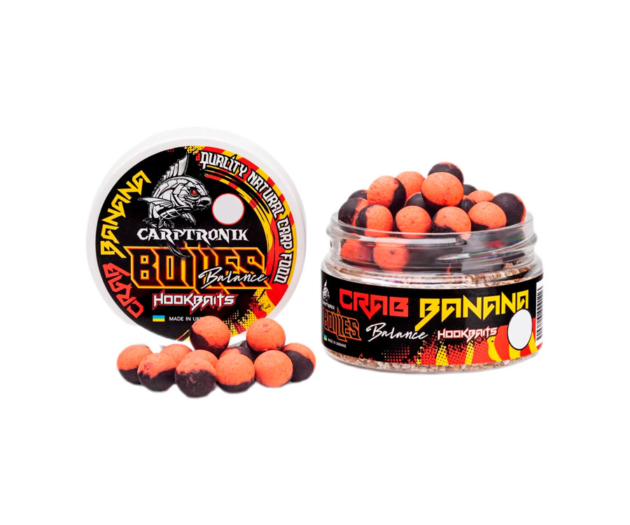 Бойли Carptronik Balance – плаваюча збалансована насадка, що складається з 2 частин: вареної тонучої та плаваючої частини pop-ups. Такий комбінований бойл дуже привабливий для обережного запресованого коропа, особливо в моменти його низької активності. Carptronik Balance однаково ефективні як на твердому дні, так і на мулистому. Яскрава плаваюча частина забезпечує чудове візуальне приваблення риби, до того ж вона світиться в ультрафіолеті, що особливо ефективно під час ловлі на глибинах понад 3 метри та за недостатньої освітленості. Потопаюча варена частина складається з поживних м'ясо-рибних компонентів, має потужний харчовий сигнал і привабливість для риби. Бойли Balance самодостатня насадка, яка знайшла широке застосування як у класичному карпфішингу, так і у флет-фідерній ловлі.