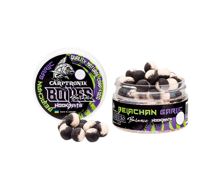 Бойли Carptronik Balance – плаваюча збалансована насадка, що складається з 2 частин: вареної тонучої та плаваючої частини pop-ups. Такий комбінований бойл дуже привабливий для обережного запресованого коропа, особливо в моменти його низької активності. Carptronik Balance однаково ефективні як на твердому дні, так і на мулистому. Яскрава плаваюча частина забезпечує чудове візуальне приваблення риби, до того ж вона світиться в ультрафіолеті, що особливо ефективно під час ловлі на глибинах понад 3 метри та за недостатньої освітленості. Потопаюча варена частина складається з поживних м'ясо-рибних компонентів, має потужний харчовий сигнал і привабливість для риби. Бойли Balance самодостатня насадка, яка знайшла широке застосування як у класичному карпфішингу, так і у флет-фідерній ловлі.
