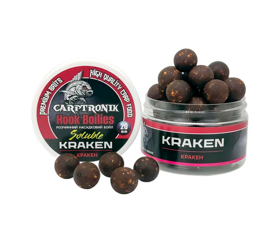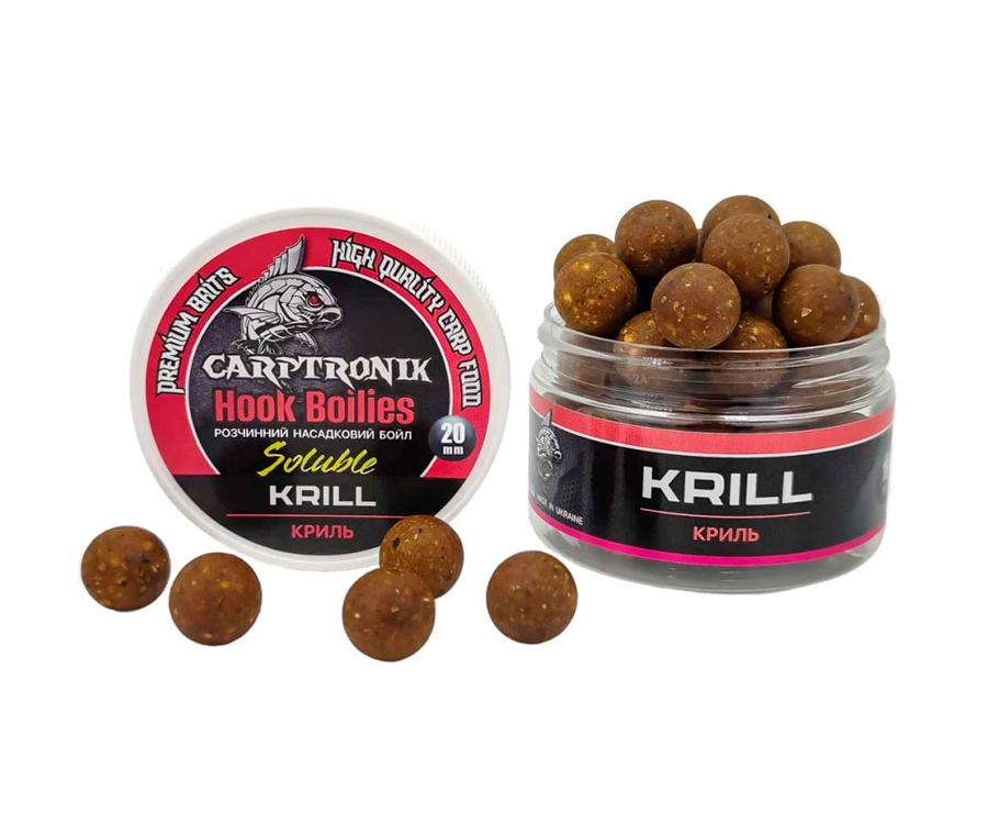 Преміальні розчинні насадкові бойли Carptronik чудово підходять для волосяного монтажу, а також добре працюють у ПВА-стиках і ПВА-пакетах із додаванням невеликої кількості прикормки. Годяться як для класичної коропової ловлі, так і для флет-фідерної риболовлі. Завдяки досить пластичній структурі приманку Carptronik легко проколоти та насадити на волос, підрізати ножем або ножицями для створення "сніговиків" чи насадок незвичної форми. Їх виготовлено з якісних інгредієнтів із додаванням високоефективних атрактантів, амінокислот і мінералів. Інтенсивний аромат, привабливий для риби смаковий і візуальний сигнал бойлів Carptronik, що пилять - запорука успіху під час спортивної або аматорської ловлі коропа, амура та іншої великої риби. Бойл насадковий розчинний Carptronik має збалансований склад поживних і привабливих елементів. Опиняючись у воді, він починає поступово розчинятися, утворюючи навколо себе привабливу для риби каламутну хмарку поживних речовин. Час повного розчинення, залежно від температури води, становить близько 4 годин.