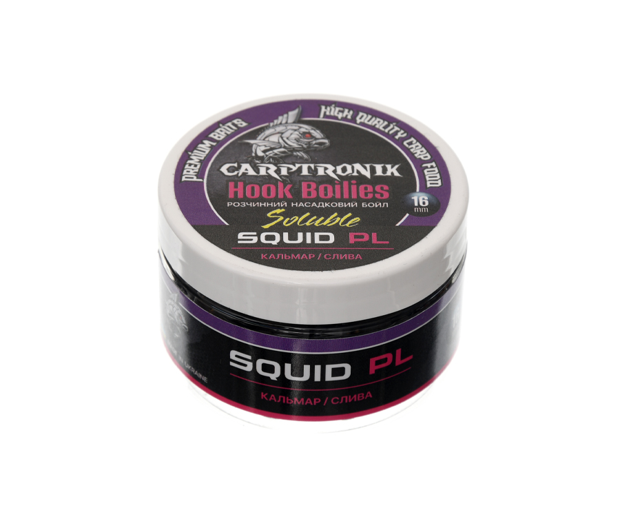 Преміальні розчинні насадкові бойли Carptronik чудово підходять для волосяного монтажу, а також добре працюють у ПВА-стиках і ПВА-пакетах із додаванням невеликої кількості прикормки. Годяться як для класичної коропової ловлі, так і для флет-фідерної риболовлі. Завдяки досить пластичній структурі приманку Carptronik легко проколоти та насадити на волос, підрізати ножем або ножицями для створення "сніговиків" чи насадок незвичної форми. Їх виготовлено з якісних інгредієнтів із додаванням високоефективних атрактантів, амінокислот і мінералів. Інтенсивний аромат, привабливий для риби смаковий і візуальний сигнал бойлів Carptronik, що пилять — запорука успіху під час спортивної або аматорської ловлі коропа, амура та іншої великої риби. Бойл насадковий розчинний Carptronik має збалансований склад поживних і привабливих елементів. Опиняючись у воді, він починає поступово розчинятися, утворюючи навколо себе привабливу для риби каламутну хмарку поживних речовин. Час повного розчинення, залежно від температури води, становить близько 4 годин.