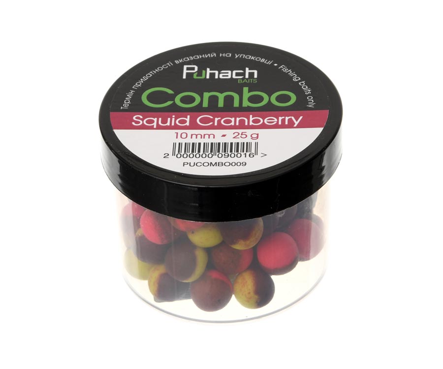 Puhach Baits Combo – унікальні бойли нейтральної плавучості та найвищої якості, які створено з комбінації плаваючих і варених бойлів. Розроблені чемпіоном України та відомим риболовом-спортсменом Олексієм Пугачем з урахуванням досвіду українських і міжнародних змагань. Це насадка для збалансованого монтажу: вона не повинна піднімати гачок, її завдання – підняти волос і зробити сам монтаж невагомим для риби. Залежно від розміру бойли Puhach Baits Combo ідеально підходять для ловлі коропа, амура, ляща та іншої великої риби. Приманки виготовлено з використанням високоякісних інгредієнтів, що поставляють із європейського ринку: зернових, стимуляторів апетиту, ароматизаторів, підсолоджувачів, харчових барвників і бетаїну. У серії присутні класичні та фруктові запахи, солодкі аромати і спеції, особливо привабливі для коропа та іншої великої риби. Бойли Puhach Combo абсолютно нешкідливі для риби та інших підводних мешканців. Їх випускають у найпопулярніших діаметрах з оригінальним кольором, смаком і запахом, що швидко поширюється у воді та чудово приваблює рибу в місце ловлі. Рекомендовано як для класичної коропової, так і для флет-фідерної ловлі.