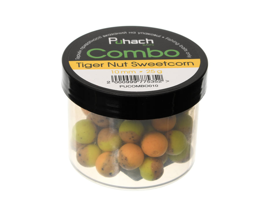 Puhach Baits Combo – унікальні бойли нейтральної плавучості та найвищої якості, які створено з комбінації плаваючих і варених бойлів. Розроблені чемпіоном України та відомим риболовом-спортсменом Олексієм Пугачем з урахуванням досвіду українських і міжнародних змагань. Це насадка для збалансованого монтажу: вона не повинна піднімати гачок, її завдання – підняти волос і зробити сам монтаж невагомим для риби. Залежно від розміру бойли Puhach Baits Combo ідеально підходять для ловлі коропа, амура, ляща та іншої великої риби. Приманки виготовлено з використанням високоякісних інгредієнтів, що поставляють із європейського ринку: зернових, стимуляторів апетиту, ароматизаторів, підсолоджувачів, харчових барвників і бетаїну. У серії присутні класичні та фруктові запахи, солодкі аромати і спеції, особливо привабливі для коропа та іншої великої риби. Бойли Puhach Combo абсолютно нешкідливі для риби та інших підводних мешканців. Їх випускають у найпопулярніших діаметрах з оригінальним кольором, смаком і запахом, що швидко поширюється у воді та чудово приваблює рибу в місце ловлі. Рекомендовано як для класичної коропової, так і для флет-фідерної ловлі.