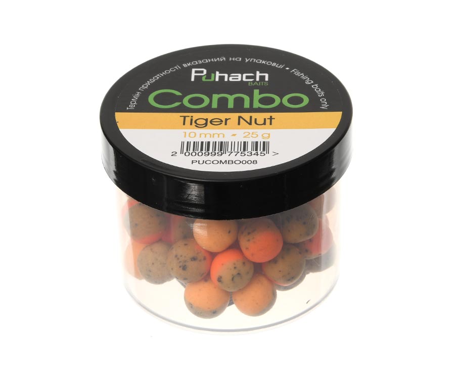 Puhach Baits Combo – унікальні бойли нейтральної плавучості та найвищої якості, які створено з комбінації плаваючих і варених бойлів. Розроблені чемпіоном України та відомим риболовом-спортсменом Олексієм Пугачем з урахуванням досвіду українських і міжнародних змагань. Це насадка для збалансованого монтажу: вона не повинна піднімати гачок, її завдання – підняти волос і зробити сам монтаж невагомим для риби. Залежно від розміру бойли Puhach Baits Combo ідеально підходять для ловлі коропа, амура, ляща та іншої великої риби. Приманки виготовлено з використанням високоякісних інгредієнтів, що поставляють із європейського ринку: зернових, стимуляторів апетиту, ароматизаторів, підсолоджувачів, харчових барвників і бетаїну. У серії присутні класичні та фруктові запахи, солодкі аромати і спеції, особливо привабливі для коропа та іншої великої риби. Бойли Puhach Combo абсолютно нешкідливі для риби та інших підводних мешканців. Їх випускають у найпопулярніших діаметрах з оригінальним кольором, смаком і запахом, що швидко поширюється у воді та чудово приваблює рибу в місце ловлі. Рекомендовано як для класичної коропової, так і для флет-фідерної ловлі.