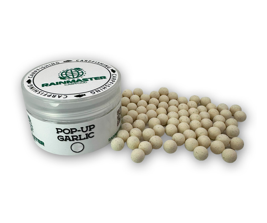 Rainmaster Pop-Up Garlic – плаваючі бойли діаметром 8 мм. Аромат: часник. Їх створено за унікальною рецептурою, здобутою впродовж багатьох років на великій кількості змагань із коропової ловлі під час максимального пресингу на рибу. Бойли Rainmaster Pop-Up виготовлено з найякісніших інгредієнтів, які не шкодять навколишньому середовищу і смакують рибі. Ідеально підходять для класичної коропової та флет-фідерної ловлі. Rainmaster Pop-Up мають оригінальний колір, смак і запах, який швидко поширюється у воді, приваблюючи рибу. Випускаються в зручній розфасовці.