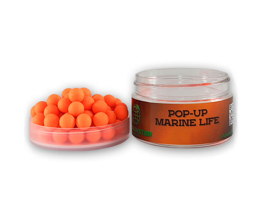 Rainmaster Pop-Up Marine Life – плаваючі бойли діаметром 10 мм. Аромат: сквід та мушля з нотками морепродуктів. Їх створено за унікальною рецептурою, здобутою впродовж багатьох років на великій кількості змагань із коропової ловлі під час максимального пресингу на рибу. Бойли Rainmaster Pop-Up виготовлено з найякісніших інгредієнтів, які не шкодять навколишньому середовищу і смакують рибі. Ідеально підходять для класичної коропової та флет-фідерної ловлі. Rainmaster Pop-Up мають оригінальний колір, смак і запах, який швидко поширюється у воді, приваблюючи рибу. Випускаються в зручній розфасовці.