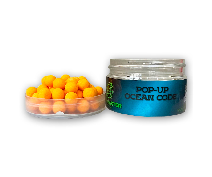 Rainmaster Pop-Up Ocean Code – плаваючі бойли діаметром 10 мм. Аромат: унікальний аромат морських риб. Їх створено за унікальною рецептурою, здобутою впродовж багатьох років на великій кількості змагань із коропової ловлі під час максимального пресингу на рибу. Бойли Rainmaster Pop-Up виготовлено з найякісніших інгредієнтів, які не шкодять навколишньому середовищу і смакують рибі. Ідеально підходять для класичної коропової та флет-фідерної ловлі. Rainmaster Pop-Up мають оригінальний колір, смак і запах, який швидко поширюється у воді, приваблюючи рибу. Випускаються в зручній розфасовці.