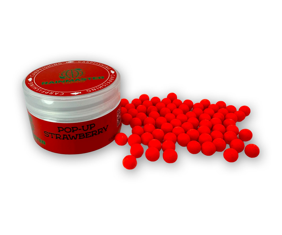 Rainmaster Pop-Up Strawberry – плаваючі бойли діаметром 8 мм. Аромат: полуниця. Їх створено за унікальною рецептурою, здобутою впродовж багатьох років на великій кількості змагань із коропової ловлі під час максимального пресингу на рибу. Бойли Rainmaster Pop-Up виготовлено з найякісніших інгредієнтів, які не шкодять навколишньому середовищу і смакують рибі. Ідеально підходять для класичної коропової та флет-фідерної ловлі. Rainmaster Pop-Up мають оригінальний колір, смак і запах, який швидко поширюється у воді, приваблюючи рибу. Випускаються в зручній розфасовці.