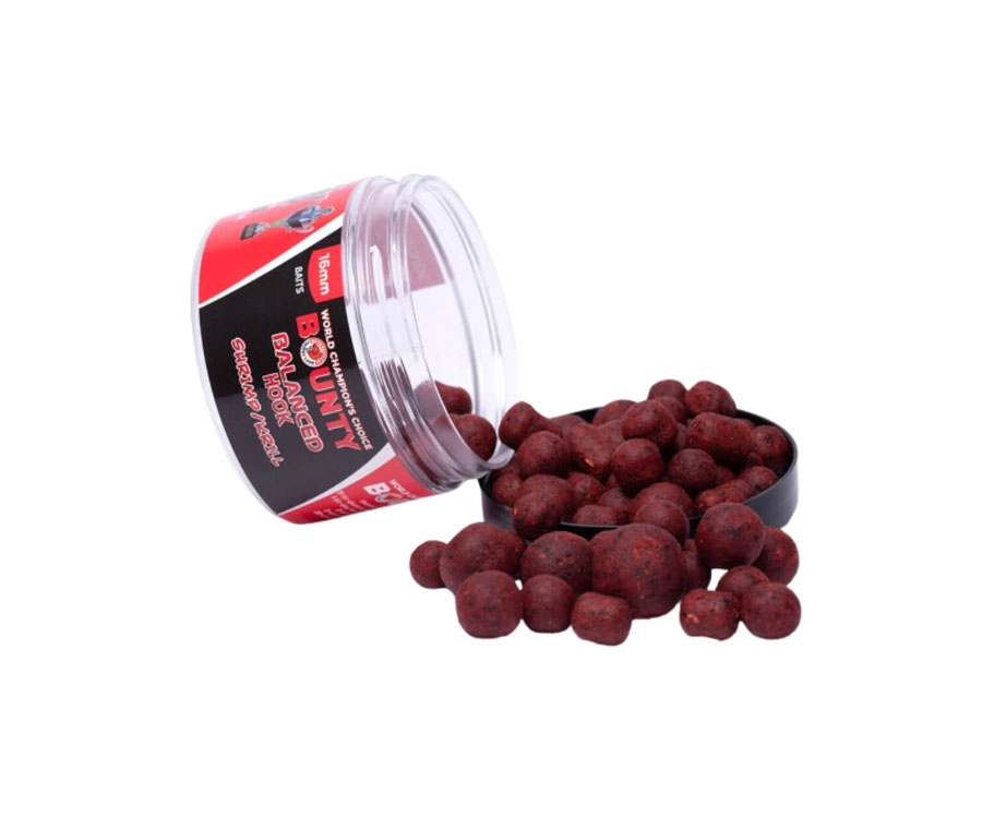 Бойли насадочні Bounty Balanced Hook Shrimp/Krill – бойли, виготовлені з натуральних інгредієнтів і мають підвищену поживність. До складу бойлів входять: амінокислоти, мінерали, олійна кислота, ферменти, вітамінний комплект і цілий букет інших інгредієнтів, так улюблених коропами. Спеціальний склад дозволяє рибі легко і швидко переварити бойли, виключивши ймовірність перегодівлі. Бойли Bounty Balanced Hook Shrimp/Krill розроблені дворазовими чемпіонами світу з коропового лову. Чудово приваблюють трофейну рибу. Завдяки своєму унікальному складу та функціональності рекомендовані як при спортивному, так і класичному лові.