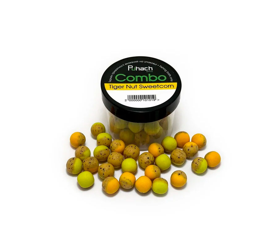 Puhach Baits Combo – унікальні бойли нейтральної плавучості та найвищої якості, які створено з комбінації плаваючих і варених бойлів. Розроблені чемпіоном України та відомим риболовом-спортсменом Олексієм Пугачем з урахуванням досвіду українських і міжнародних змагань. Це насадка для збалансованого монтажу: вона не повинна піднімати гачок, її завдання – підняти волос і зробити сам монтаж невагомим для риби. Залежно від розміру бойли Puhach Baits Combo ідеально підходять для ловлі коропа, амура, ляща та іншої великої риби. Приманки виготовлено з використанням високоякісних інгредієнтів, що поставляють із європейського ринку: зернових, стимуляторів апетиту, ароматизаторів, підсолоджувачів, харчових барвників і бетаїну. У серії присутні класичні та фруктові запахи, солодкі аромати і спеції, особливо привабливі для коропа та іншої великої риби. Бойли Puhach Combo абсолютно нешкідливі для риби та інших підводних мешканців. Їх випускають у найпопулярніших діаметрах з оригінальним кольором, смаком і запахом, що швидко поширюється у воді та чудово приваблює рибу в місце ловлі. Рекомендовано як для класичної коропової, так і для флет-фідерної ловлі.