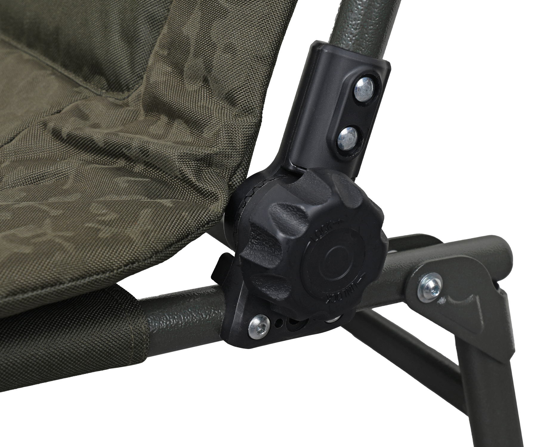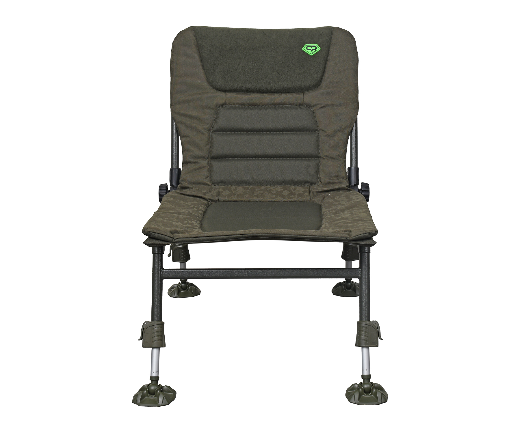 Carp Pro Diamond Compact Chair – складане крісло без підлокітників, що спеціально розроблено для класичної коропової та флет-фідерної ловлі і яке гарантує риболову високий рівень комфорту. Через відсутність підлокітників маємо вільний доступ до вудлища та навісного устаткування. За рахунок використання надійної та міцної рами зі сталі та алюмінію, крісло без проблем витримує високі навантаження – до 130 кг. Оббивку крісла в унікальному камуфляжному забарвленні Carp Pro виконано зі зносостійкого водовідштовхувального матеріалу 650D і м'якого мікрофлісу. Завдяки великому підголівнику та м'яким вставкам із піноматеріалу з ефектом пам'яті в підголівнику, сидінні та спинці, тіло набуває природного положення, що сприяє довготривалій і нестомлюючій ловлі. Коропове крісло Carp Pro Diamond Compact Chair швидко встановлюється, а кут нахилу спинки легко і просто регулюється в широких межах гвинтовими фіксаторами з боків. Крісло можна без проблем розмістити на нерівній і похилій поверхні завдяки чотирьом телескопічним ніжкам із надійними та легкими у використанні фіксаторами. Ніжки оснащено збільшеними шарнірними п'ятами, які не дають кріслу провалюватися в м'який ґрунт і забезпечують додаткову стійкість на похилій поверхні. У транспортному положенні крісло CP Diamond Compact Chair досить компактне і зручне для перевезення.