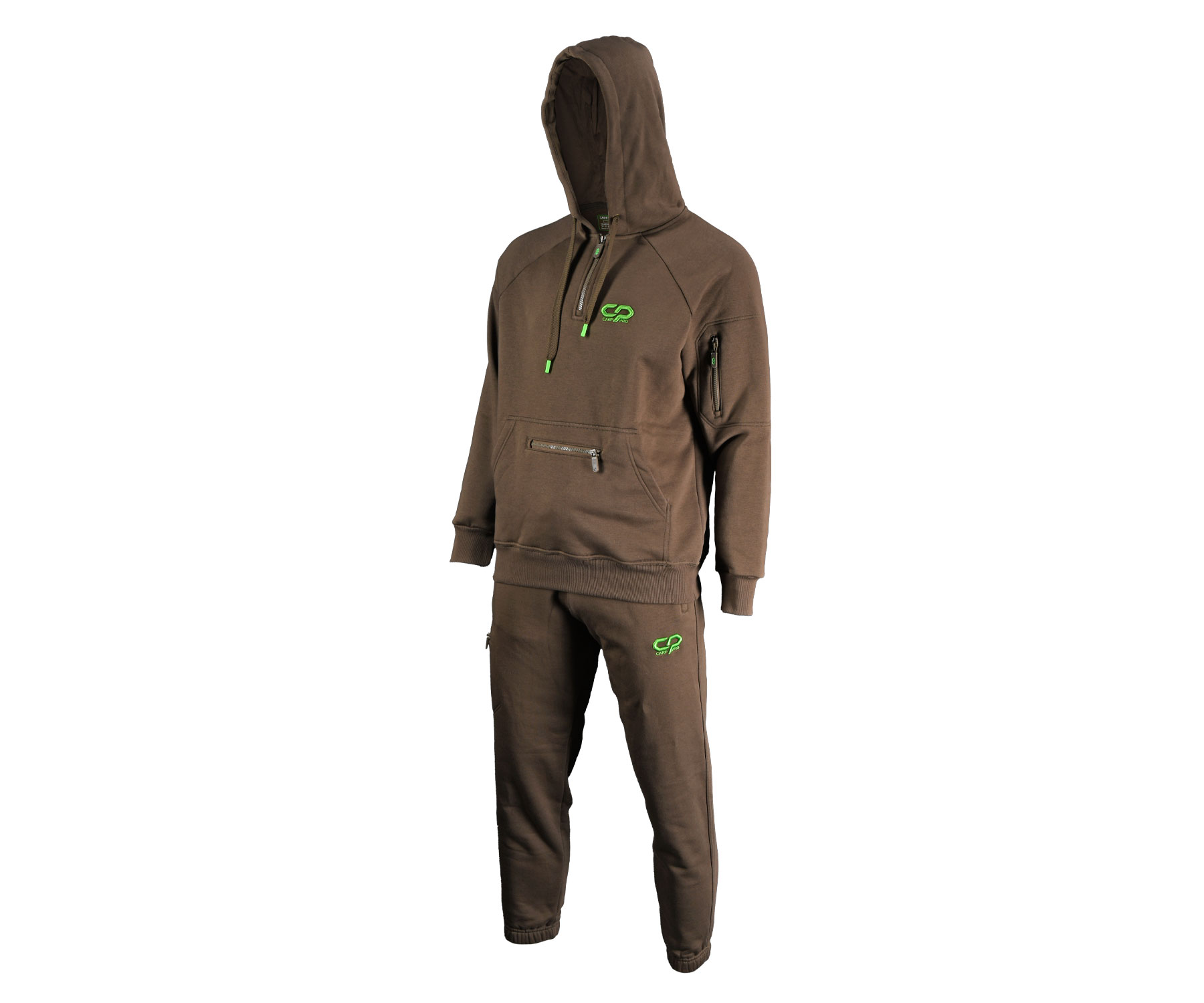 Костюм Carp Pro Half Zip – практичний і зручний трикотажний костюм тринитка із футера з начосом, який ідеально підійде для риболовлі, кемпінгу, активного відпочинку на природі та повсякденного носіння. Костюм виготовлений із натуральної тканини, гладенької із зовнішнього боку та з коротким ворсом із внутрішнього, завдяки чому він надзвичайно комфортний у носінні. Легкий, м'який і дихаючий матеріал запобігає утворенню конденсату та чудово зберігає тепло. Костюм складається з худі та штанів. У великій передній кишені куртки можна зігріти змерзлі руки, а глибокий капюшон з утяжкою на підкладі з бавовняного інтерлока надійно захистить вас від холоду та вітру. Половинна блискавка в горловині дає змогу за потреби коригувати комфортну температуру тіла, а манжети та талія куртки з еластичним дов’язом збережуть тепло. У штанах передбачено дві бічні кишені на блискавці. Пояс – на резинці, також у поясі передбачено стягування шнурком. Для збереження тепла низ штанин має еластичний дов’яз. Крім того, у штанях, на рукаві куртки й на великій кишені куртки передбачені додаткові кишені для гаджетів на блискавках. Усі кармани мають підклад із бавовняного інтерлока. Куртка і штани костюма Carp Pro CP2533 оздоблені вишитим логотипом CP. Костюм Carp Pro Half Zip сподобається всім, хто цінує стильний сучасний вигляд одягу разом із його практичністю та високим комфортом. Склад: бавовна – 95%, еластан – 5%.