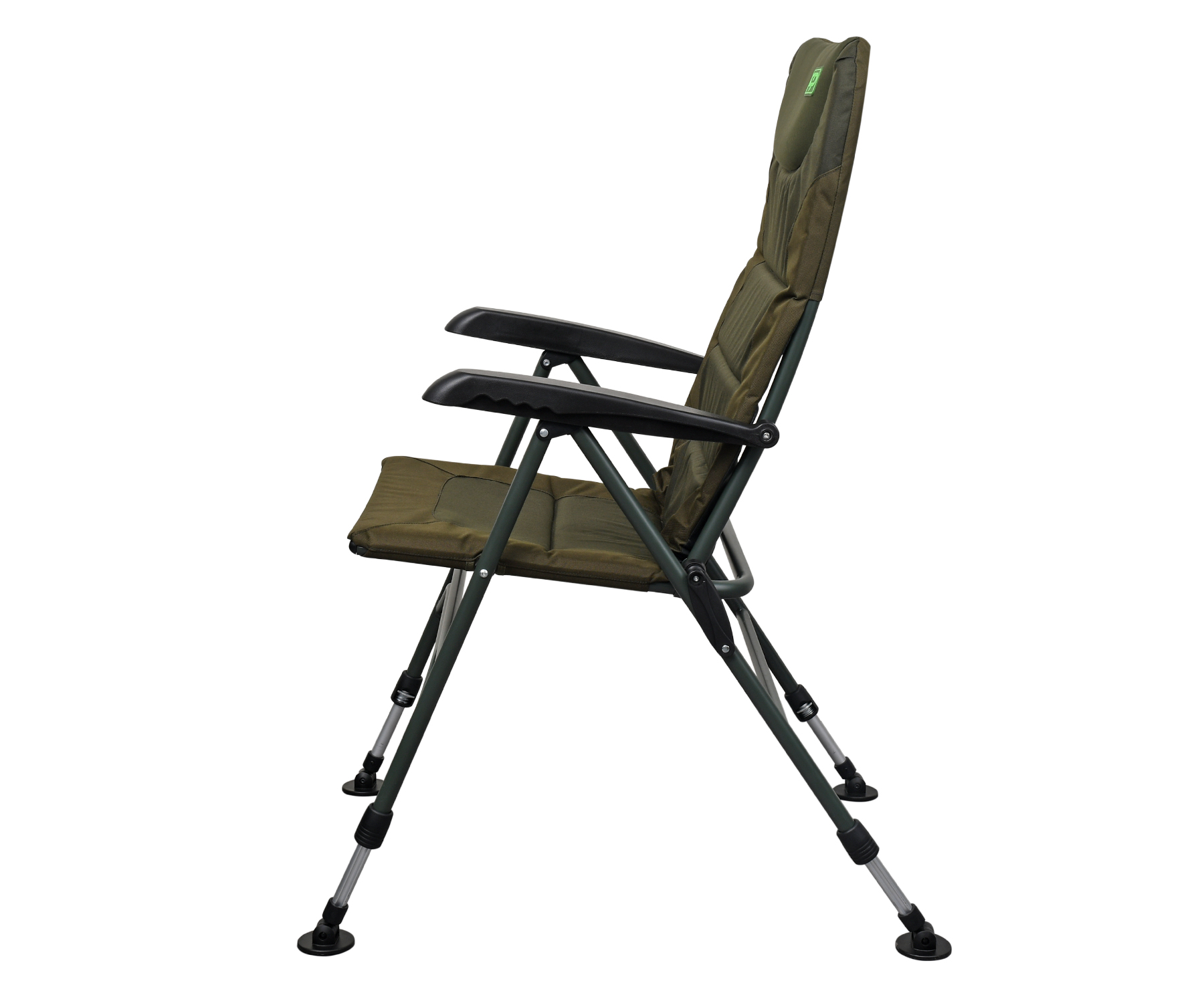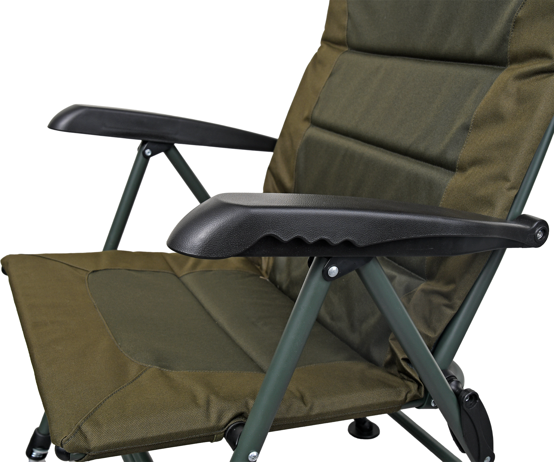 Carp Pro Comfort Light Chair – складане коропове крісло з підлокітниками, яке спеціально розроблено для ловлі коропа й гарантує риболову високий рівень комфорту. Унаслідок використання посиленої сталевої рами, крісло з легкістю витримує навантаження до 130 кг. Оббивку виконано з водовідштовхувального матеріалу 600D. Завдяки інтегрованому в спинку підголів’ю і м'яким вставкам на сидінні та спинці тіло приймає природне положення, що сприяє довготривалій і комфортній ловлі. Коропове крісло Carp Pro Comfort Light Chair швидко встановлюється, а кут нахилу спинки легко та просто регулюється за допомогою підлокітників без необхідності вставати з крісла. Крісло можна без проблем розмістити на нерівній і похилій поверхні завдяки чотирьом телескопічним ніжкам (Ø 25 мм) з надійними й легкими в користуванні фіксаторами. Ніжки оснащено збільшеними шарнірними грязьовими п'ятами, які не дають кріслу провалюватися в м'який ґрунт і забезпечують додаткову стійкість на похилій поверхні. У транспортному положенні крісло CP Comfort Light Chair компактне та зручне для перевезення.