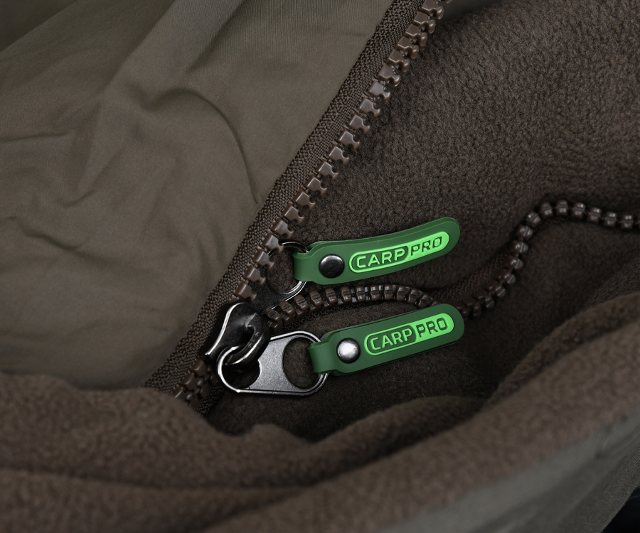 Carp Pro 5 Season Big Size Sleeping Bag – спальний мішок великих розмірів, який спеціально розроблено під великі коропові ліжка, як-от Carp Pro Diamond Big Size, і розраховано на використання впродовж усього року в будь-який сезон. Завдяки особливому дизайну, сучасним матеріалам і наповнювачу нового покоління ця модель спального мішка забезпечує ефективне утримання тепла всередині виробу навіть у найхолодніші місяці. Спальник Carp Pro 5 Season Big Size Sleeping Bag із 2 сторін оснащено надійними двосторонніми блискавками зі зручними брендованими пулерами. Його зовнішня тканина виготовлена з вітрозахисного, повітропроникного та водостійкого матеріалу Polyester 600D. Водночас ця тканина здатна «дихати», вона відводить зайву вологу від тіла та не пропускає вологу із зовні. Верхня ковдра має внутрішню сторону із фліса. Додатковий утеплюючий шар із поліестеру з наповнювачем кріпиться до верхньої ковдри блискавками й може бути знятий у разі необхідності. Основу спальника вироблено із Polyester 600D з м’яким наповнювачем, що запобігає втратам тепла, підтримує комфортну температуру, сприяє відведенню вологи від тіла та забезпечує високий рівень комфорту та відпочинку. Для надійної фіксації спального мішка до ліжка його нижню частину зверху та знизу обладнано двома кишенями-утримувачами. А для додаткового більш надійного кріплення до ліжка нижню частину виробу оснащено регульованим паском-фіксатором із застібкою фастекс. Для транспортування спальний мішок Carp Pro 5 Season Big Size Sleeping Bag укомплектовано сумкою-чохлом зі шнурівкою та ручкою для перенесення.