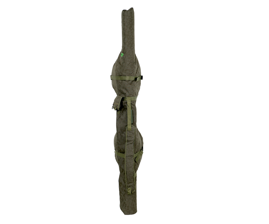 Чохол Carp Pro Diamond CPL00145 для 6 двочастинних коропових вудлищ із котушками. Виконано з міцного вологостійкого матеріалу з фірмовим камуфляжним забарвленням щільністю 650D із додатковою амортизаційною підкладкою. Для максимального комфорту під час перенесення Carp Pro Diamond оснащено трьома ручками з EVA-накладками, а також регульованим паском через плече із широкою накладкою. Паски на ручках, що «оперізують» чохол, обладнано застібками, які легко роз’єднати однією рукою. Збоку розташовано велику кишеню для зберігання стійок, підсаки тощо. Замки блискавок оздоблені прогумованими пулерами. Щоби виключити взаємне пошкодження вудлищ і котушок, передбачено спеціальні м’які перегородки. На торці чохла Diamond CPL00145 розміщено три гумових ніжки, які дають змогу встановити його вертикально.