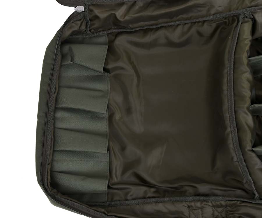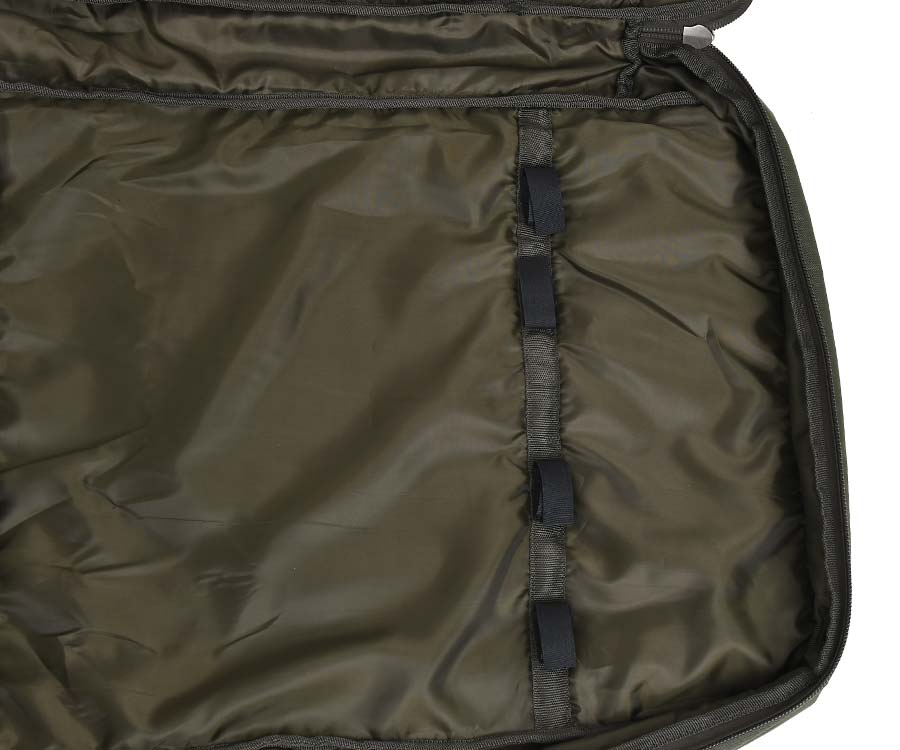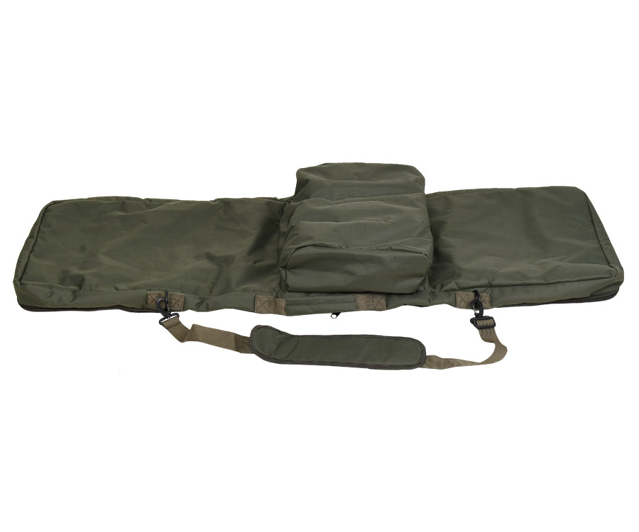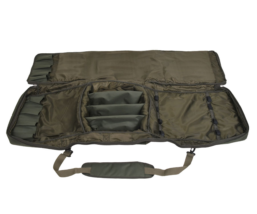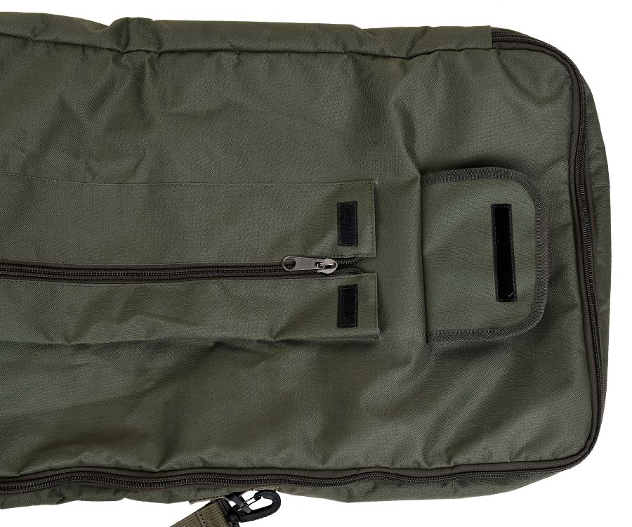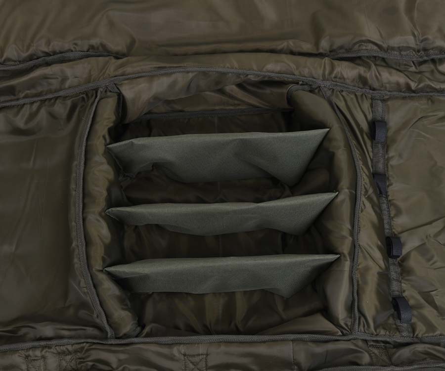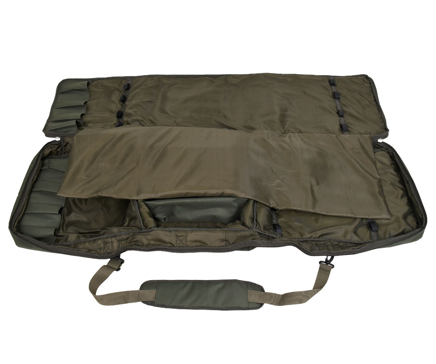 Чохол Carp Pro CPL144 – практичний і зручний холдал, що призначено для зберігання й перенесення чотирьох 3-секційних коропових вудлищ завдовжки 3,9 м, які оснащено котушками. Виготовлено з міцної, стійкої до зношування й водонепроникної тканини 600D. Особливістю моделі є можливість безпечного зберігання вудлищ, які обладнано пропускними кільцями діаметром 50 мм і оснащено котушками великого розміру Big Pit. Кріплення на липучках надійно фіксують вудлища всередині чохла. Секції для котушок розділено м'якими перебірками, які запобігають пошкодженню котушок. Верхню і нижню частини холдала розділено м'якою вставкою, яка захищає вудлища від пошкоджень і контакту між собою. Зовнішня кишеня дозволяє транспортувати підставки для вудлищ або складану коропову підсаку. У конструкції використано потужні й надійні замки-блискавки. Для зручності перенесення передбачено посилені ручки з пасової тасьми й знімний наплічний ремінь із м'якою накладкою. За потреби у холдалі можна зберігати від 4 до 8 триколінних коропових вудлищ завдовжки 3,9 м. Без вмісту чохол досить компактний у складеному вигляді, що є значною перевагою під час його зберігання.